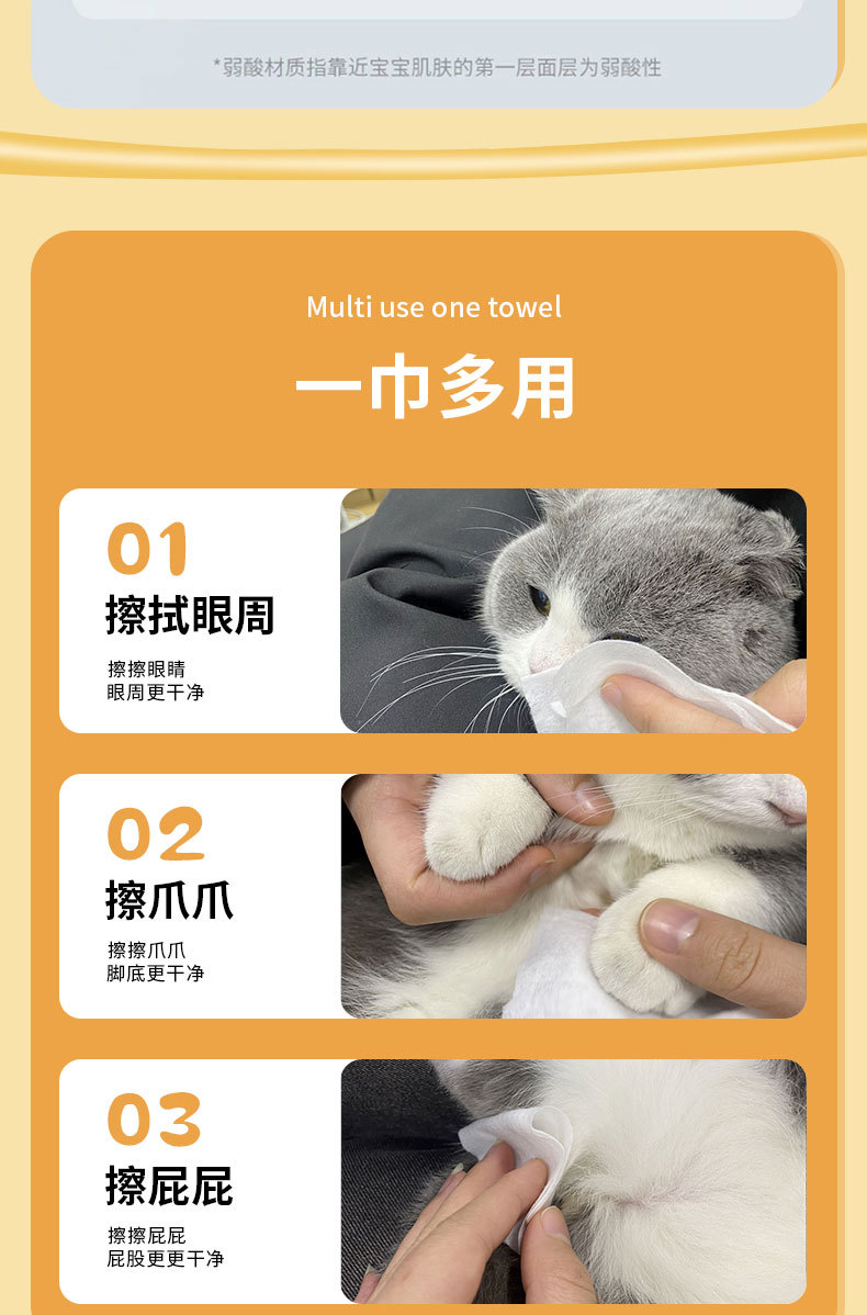 宠物湿巾猫咪狗狗专用护理消毒除臭擦屁股擦眼泪痕护理湿纸巾80抽