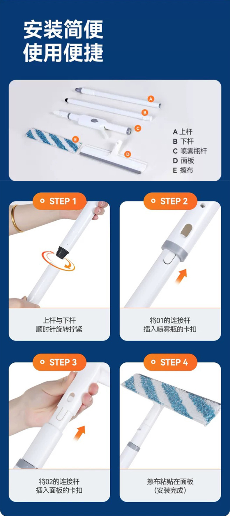宝家洁玻璃喷雾擦窗器家用双面式玻璃刮水器浴室地板车窗清洁工具