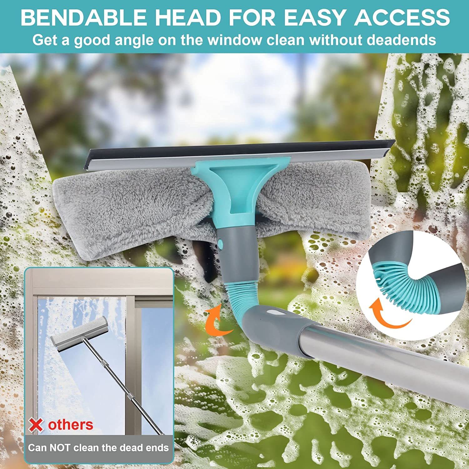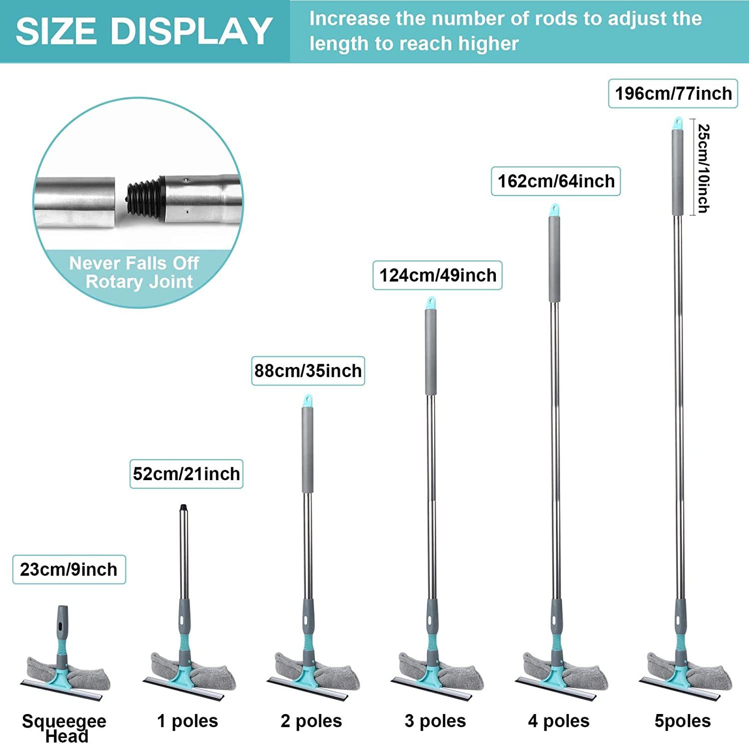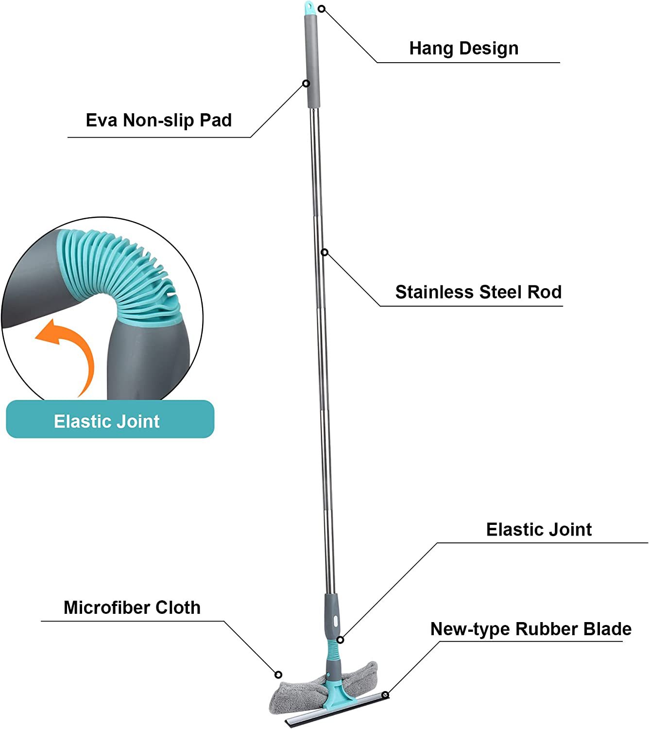 跨境电商2合1加长拼接杆弹性擦窗器清洁刮水器玻璃刮可旋转可弯曲