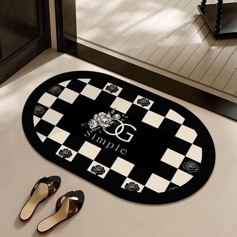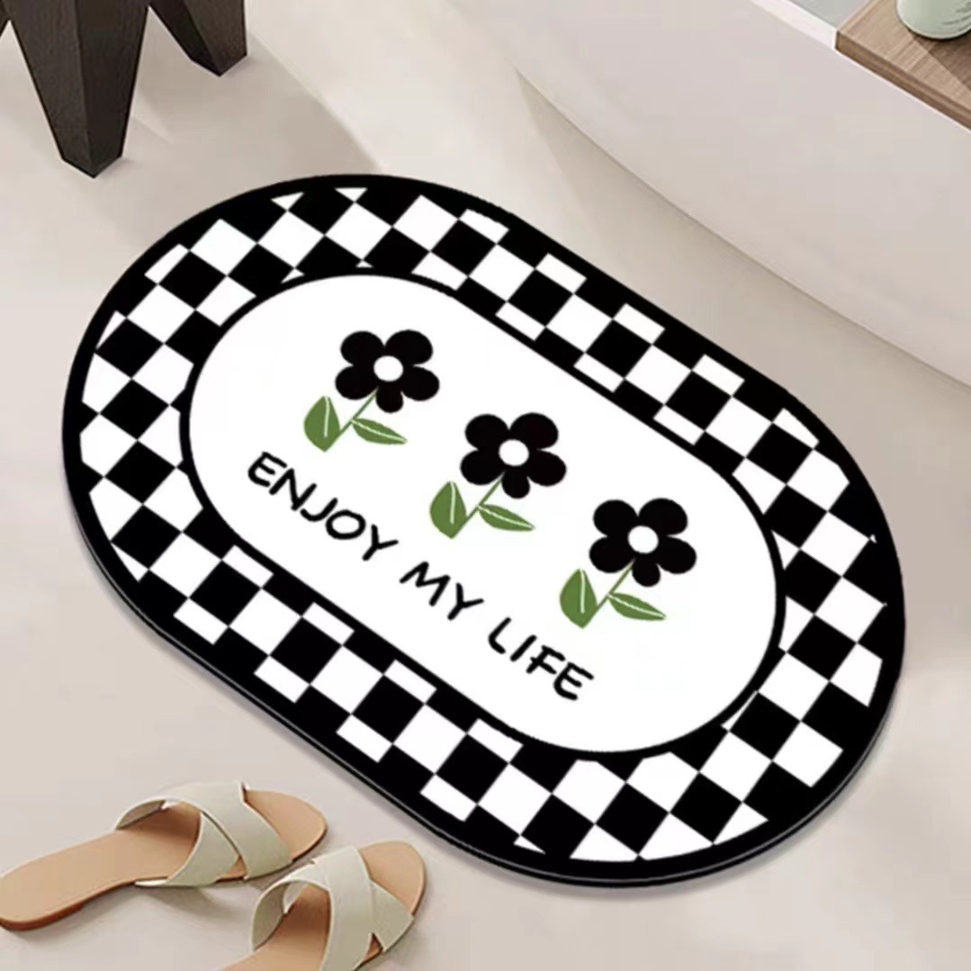 北欧风棋盘格硅藻泥地垫吸水速干防滑浴室卫生间脚垫厕所地垫软垫