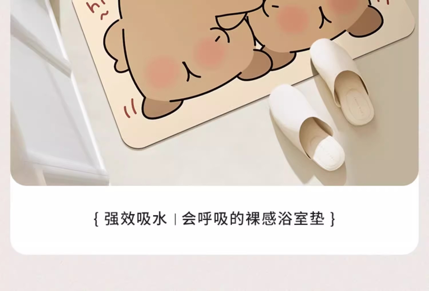 卡通小熊硅藻泥地垫卫生间吸水防滑垫子可剪裁浴室地垫家用速干垫