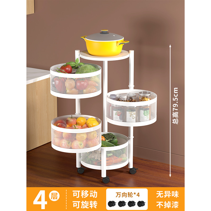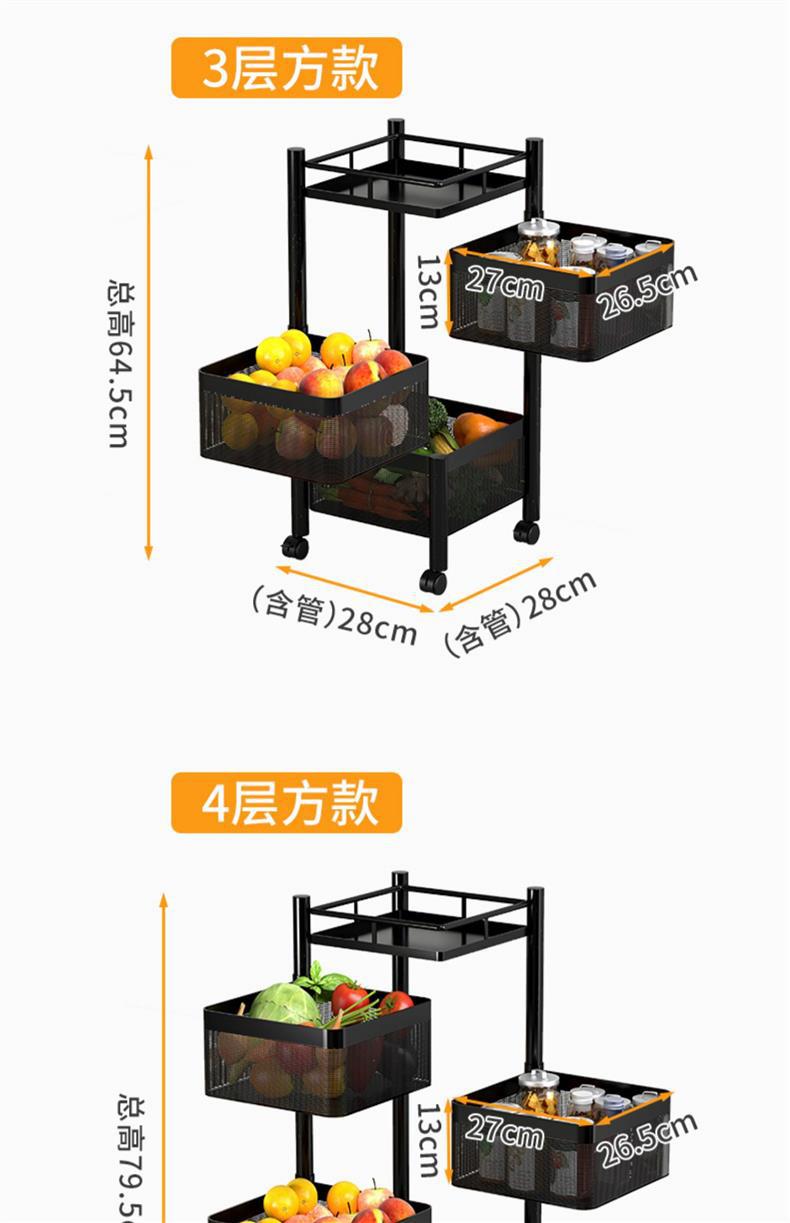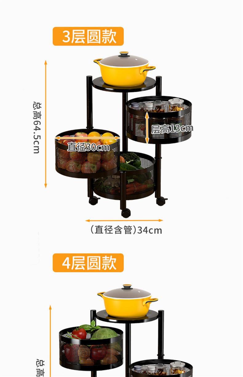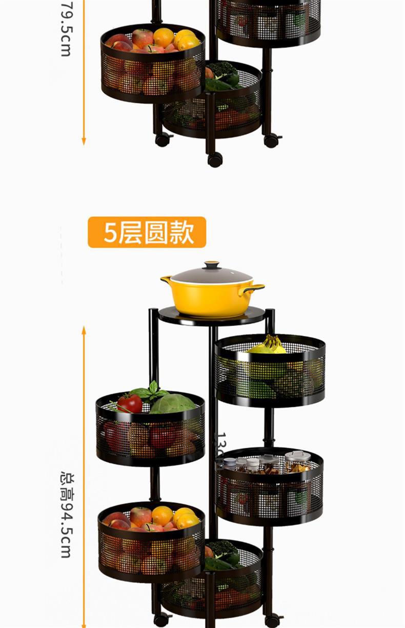 收纳筐旋转多层菜篮子专用厨房蔬菜置物架家用储菜架可移动小推车