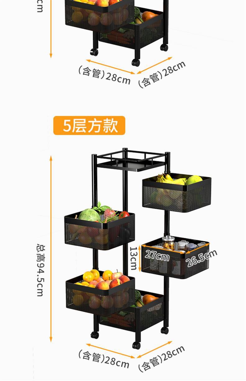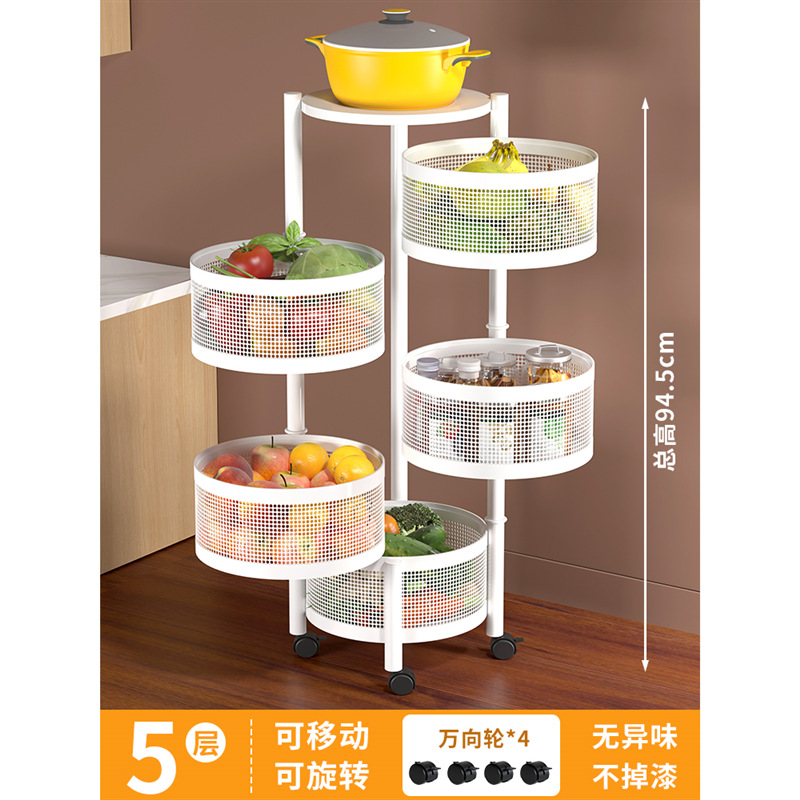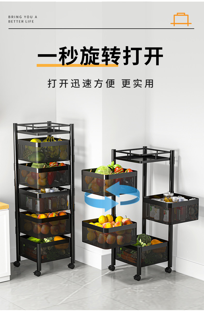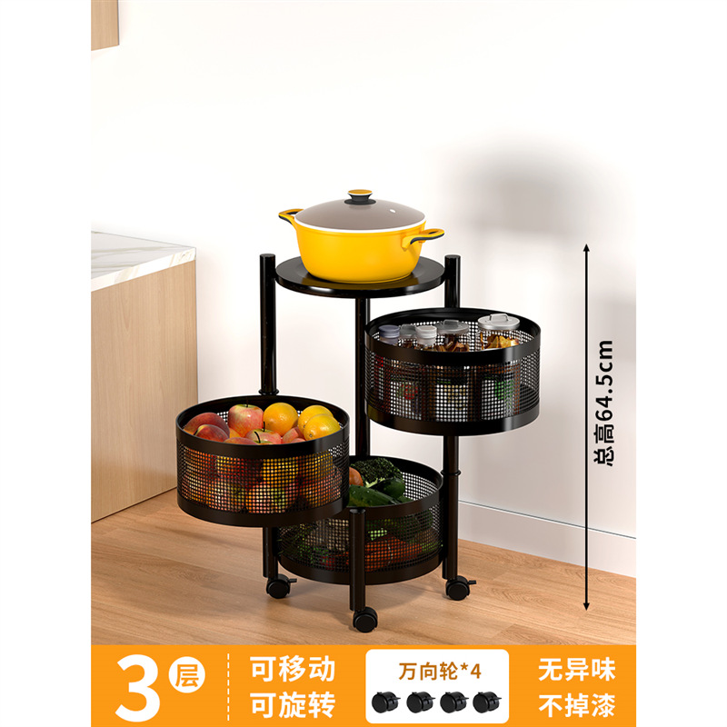 收纳筐旋转多层菜篮子专用厨房蔬菜置物架家用储菜架可移动小推车