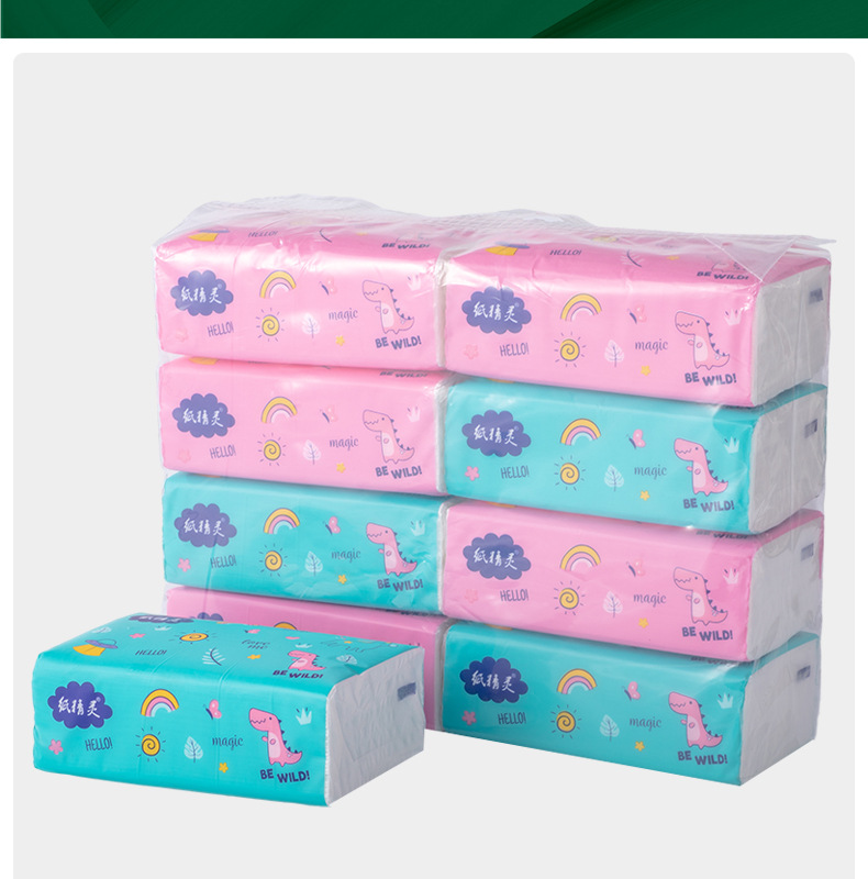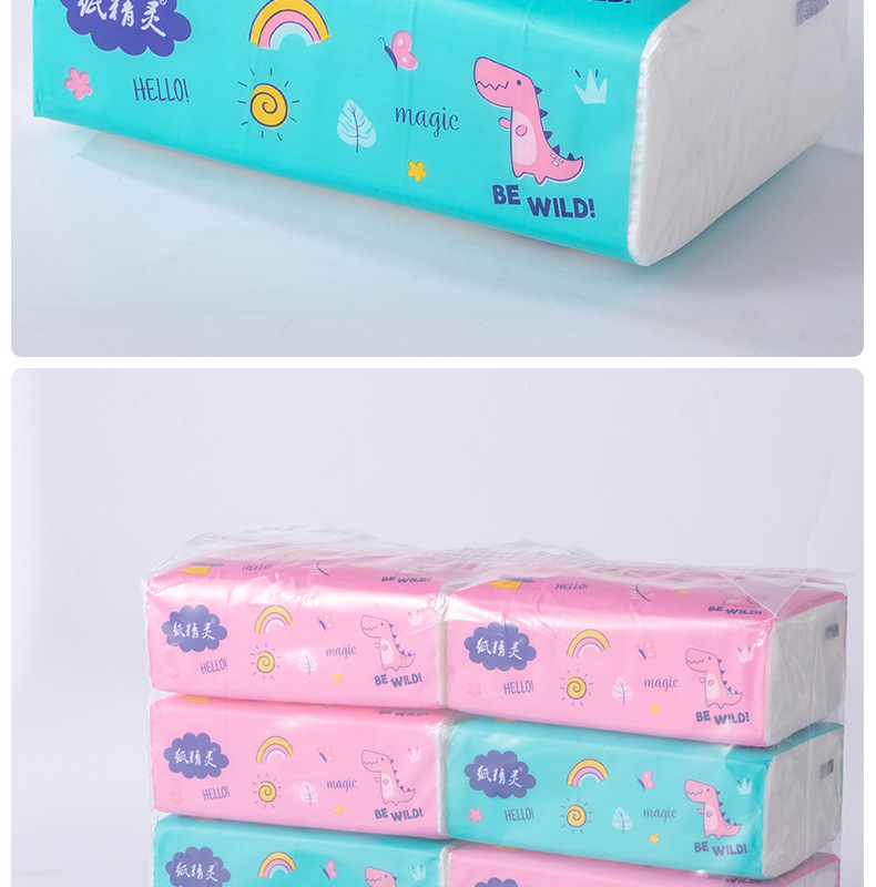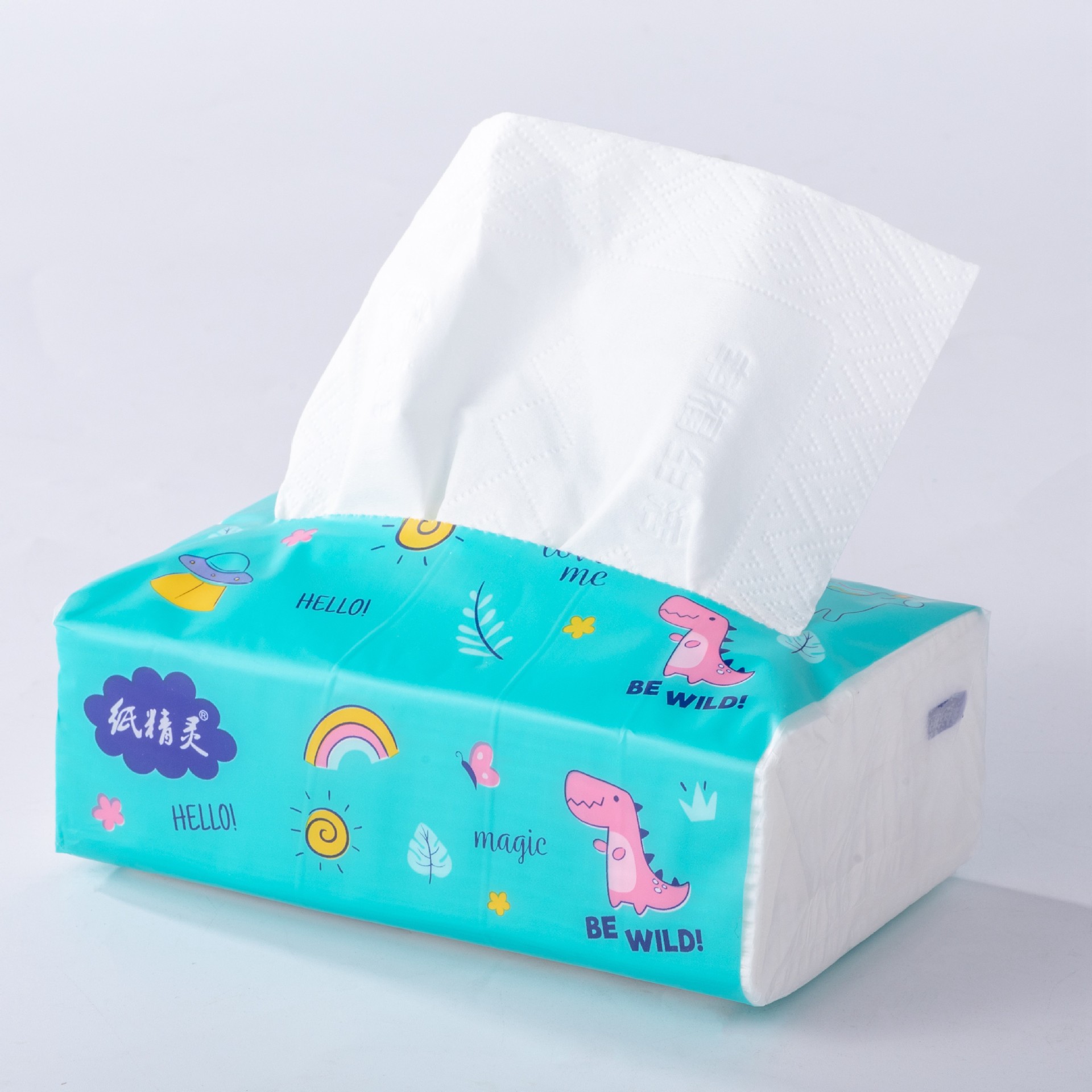 双色纸精灵抽纸现货批发 4层90抽大包日用卫生纸家用抽纸厚实柔软