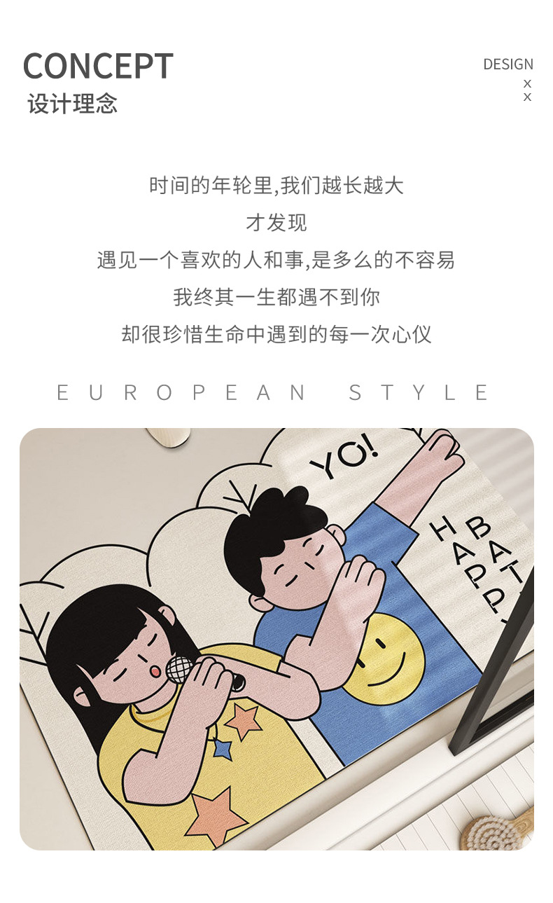 卡通风浴室吸水垫卫生间易干防滑垫厕所门口耐脏可裁剪硅藻泥地垫