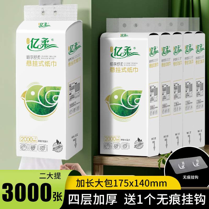 亿柔1900张悬挂式抽纸卫生纸批发家用抽纸挂壁式大包纸巾挂式抽纸