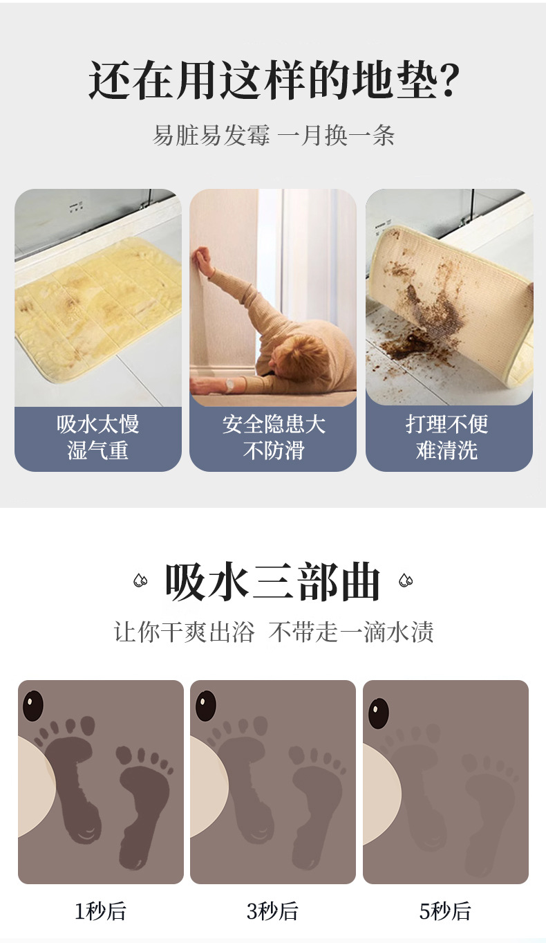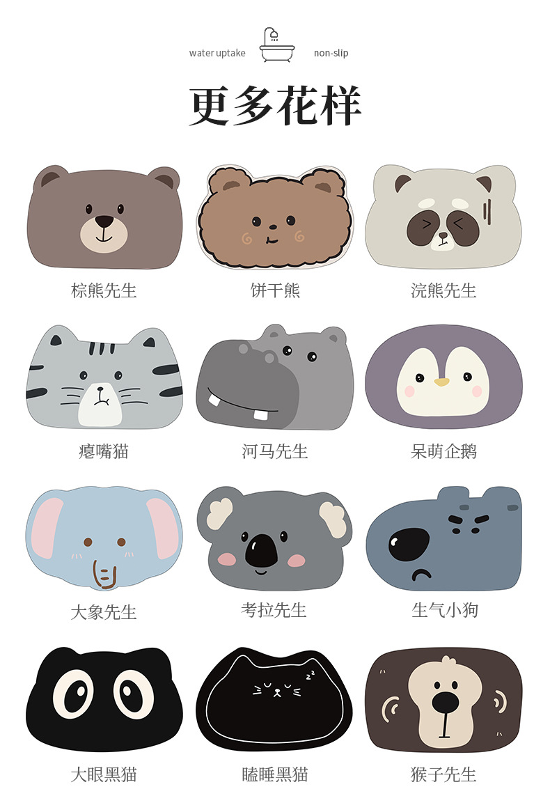 卡通异形小熊硅藻泥地垫浴室防滑垫家用卫生间进门入户速干软脚垫