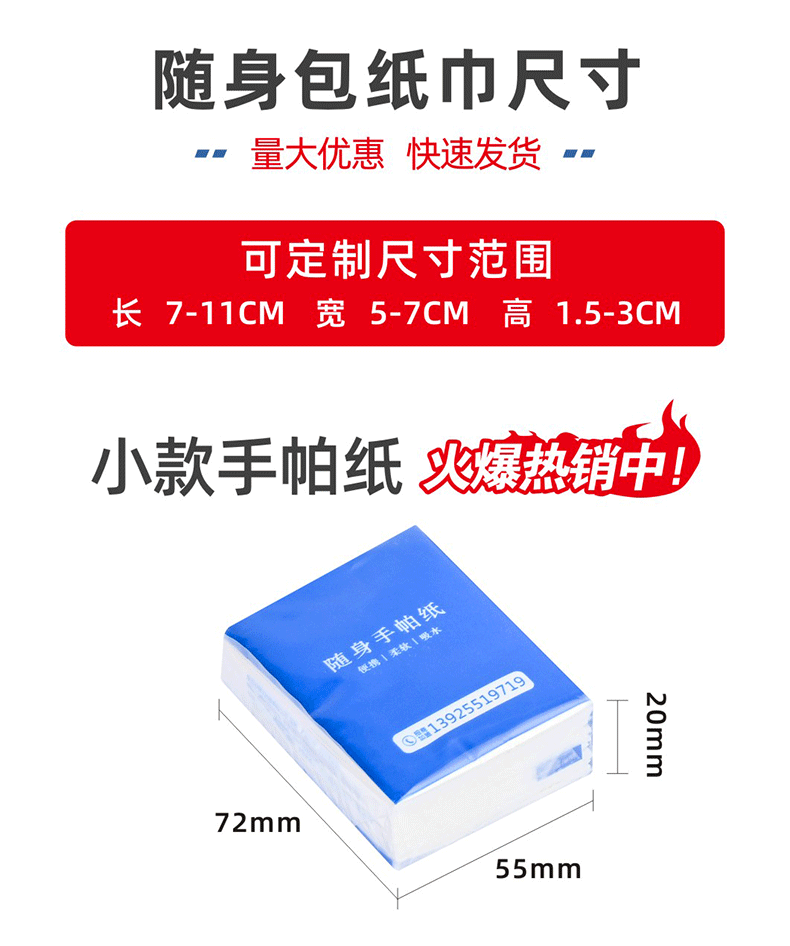 手帕纸巾定制可印logo定做餐巾纸工厂纸巾订制企业宣传面巾纸小包