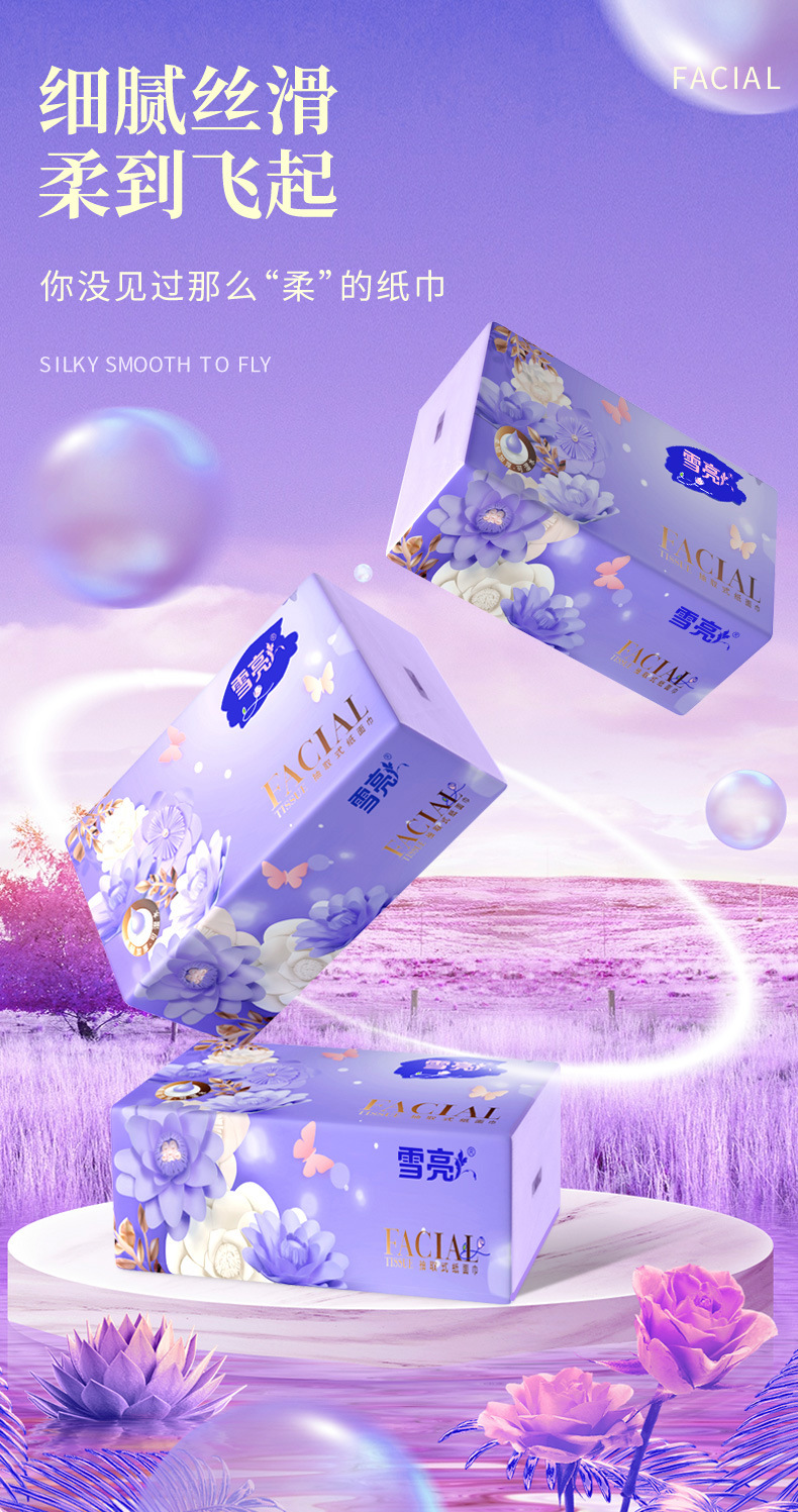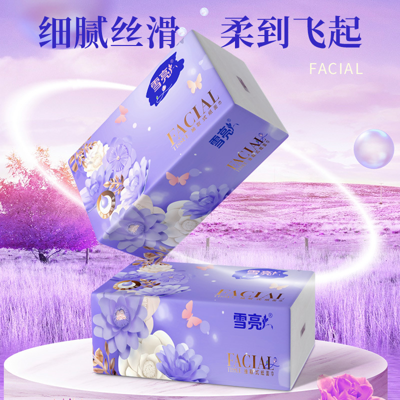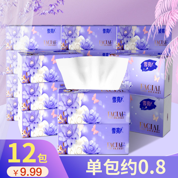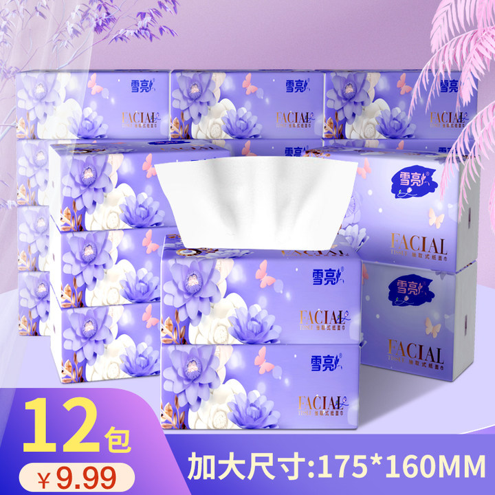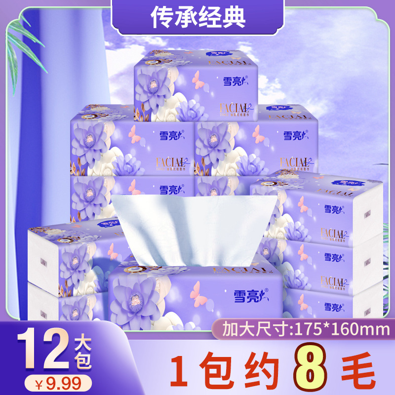 雪亮抽纸12包批发家用抽纸巾擦手纸4层加厚可湿水餐巾纸卫生纸