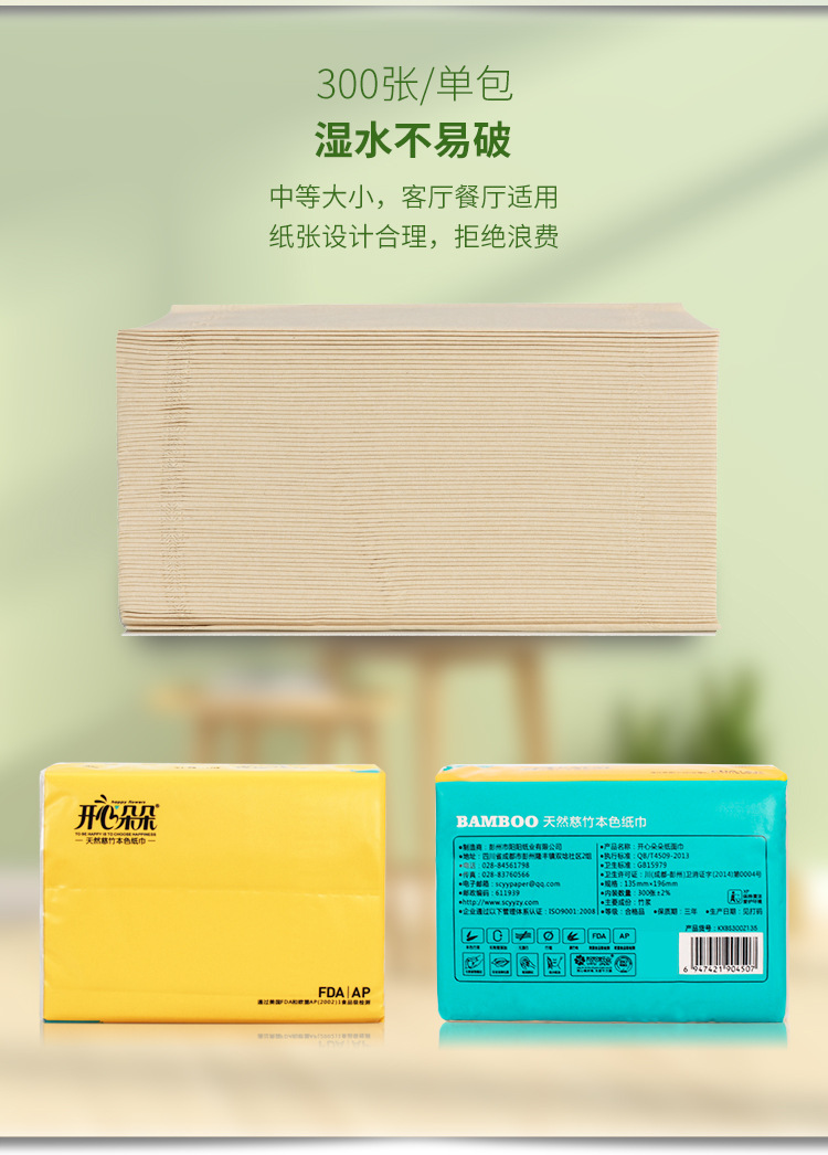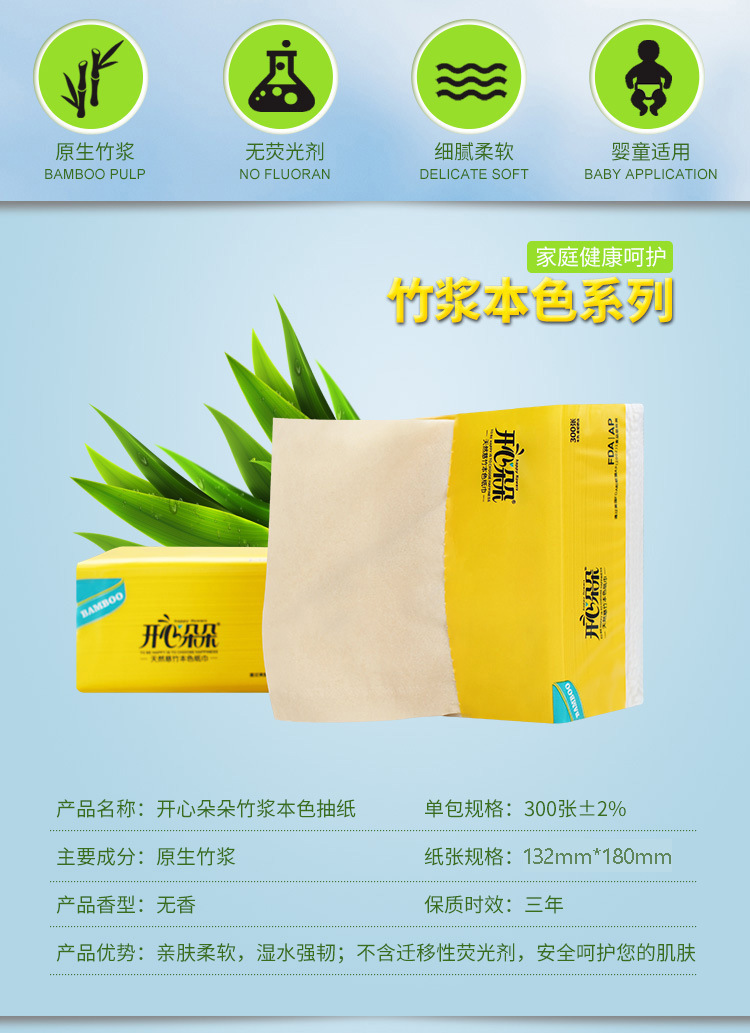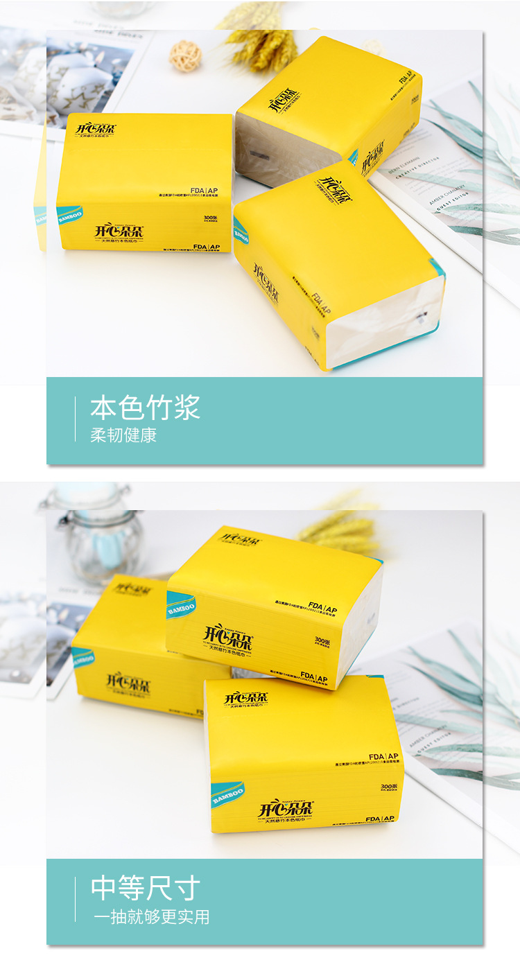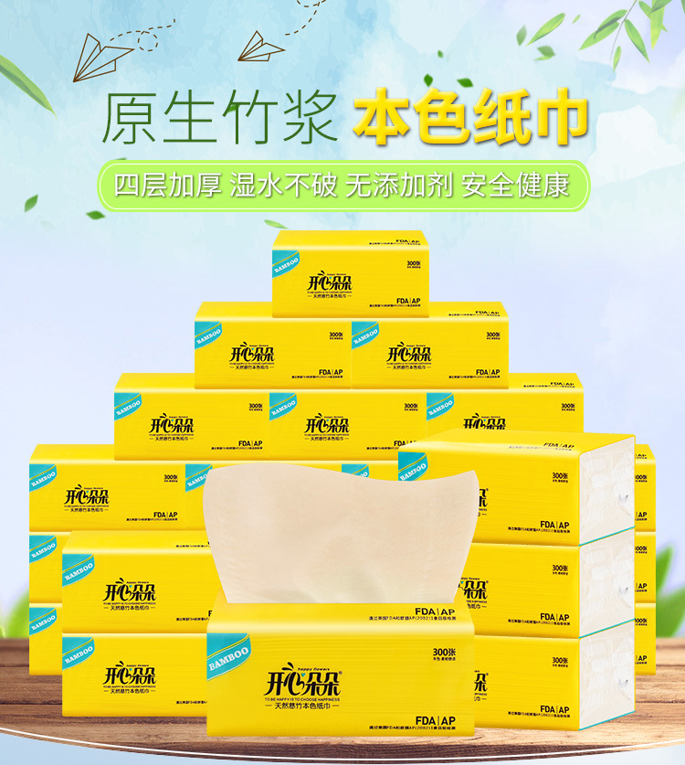 批发180型300张竹浆抽纸 家用本色餐纸巾四层加厚大包竹浆抽纸
