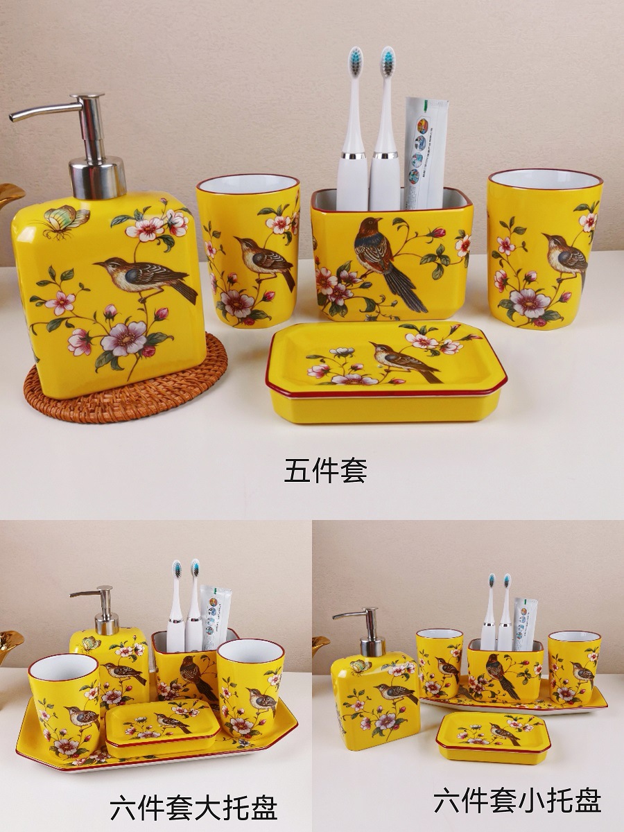 高端新中式卫浴洗漱套装美式陶瓷漱口杯五件套浴室刷牙杯托盘套件