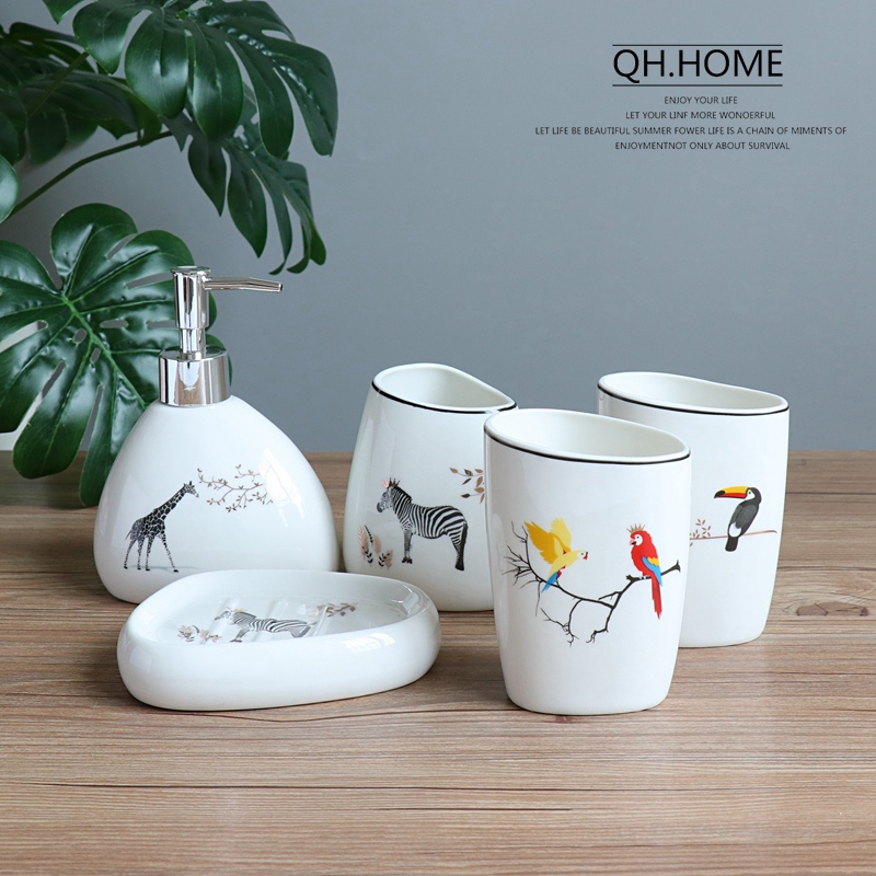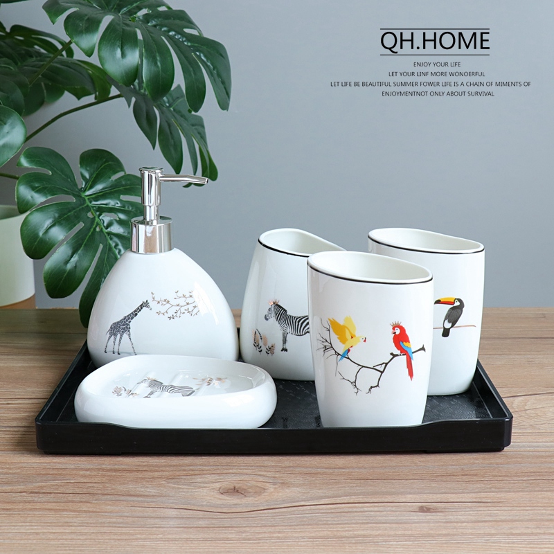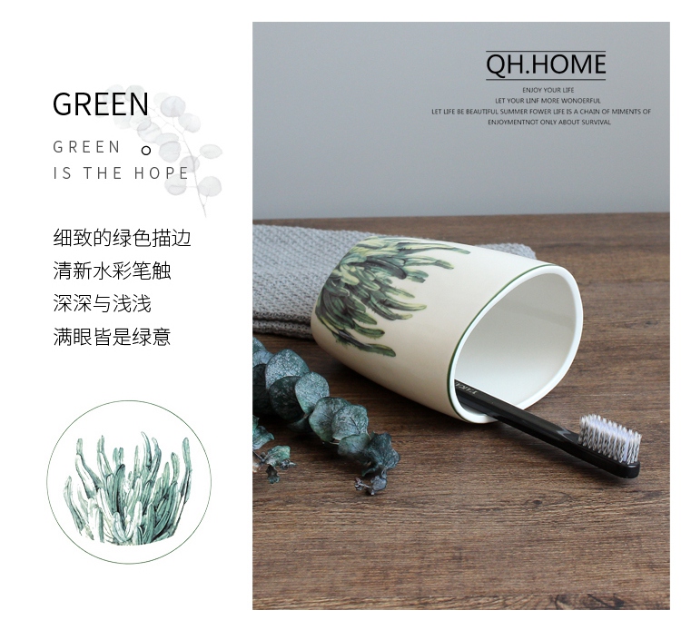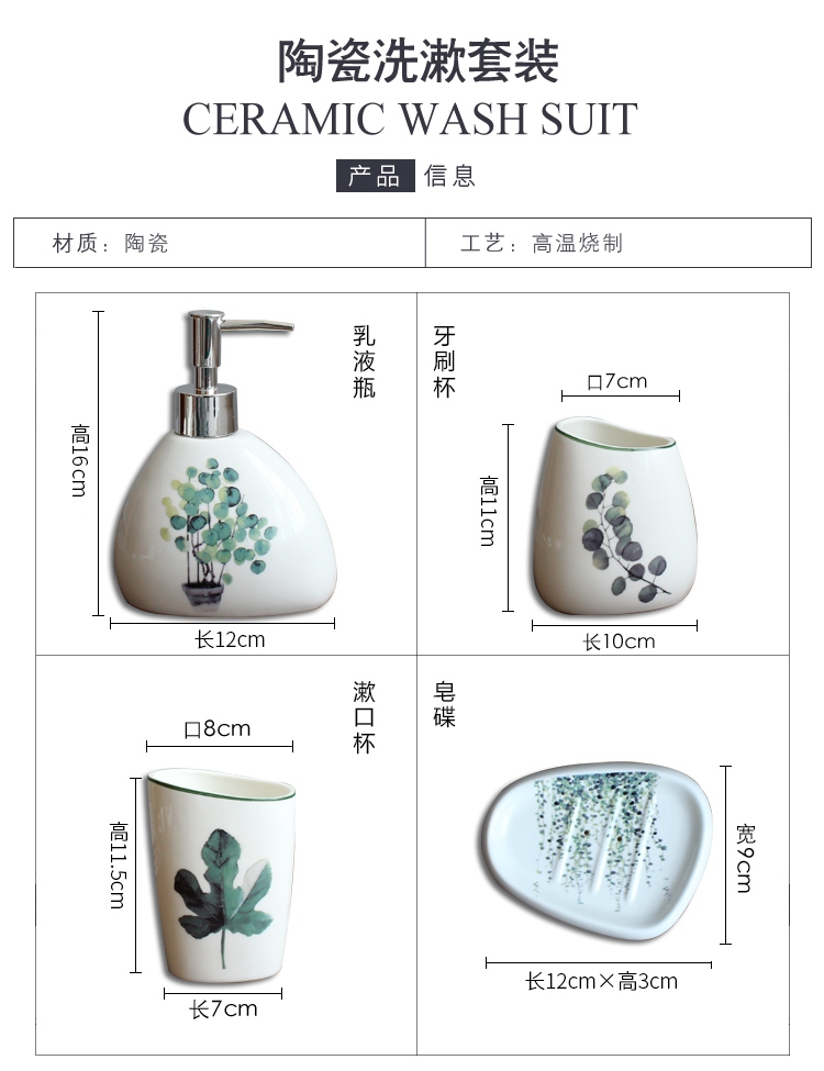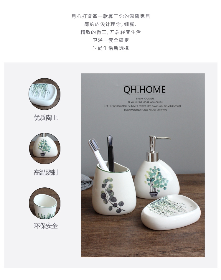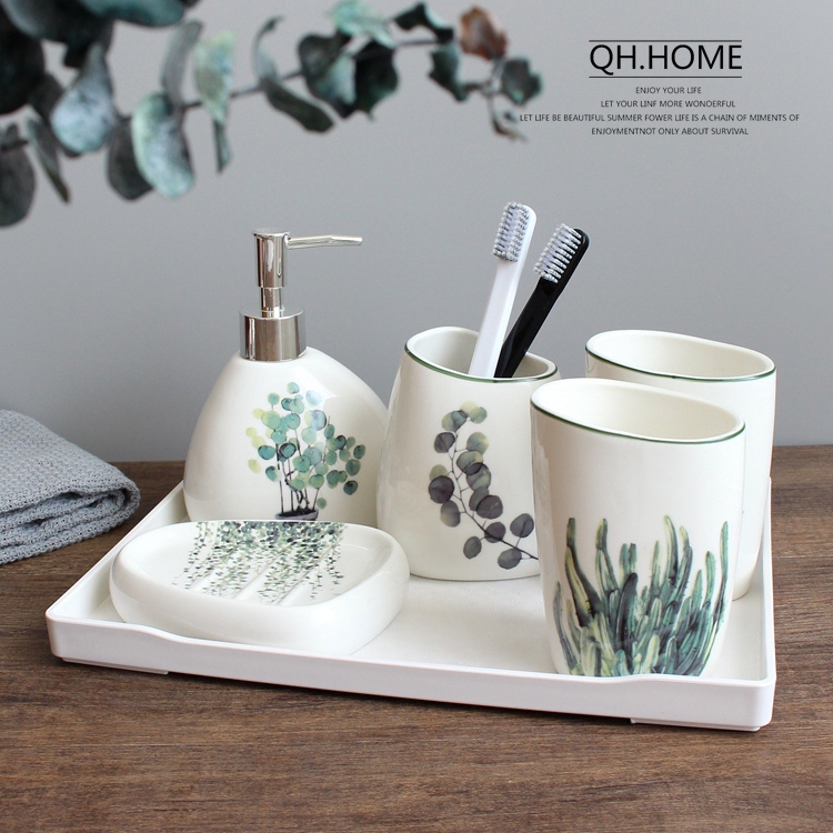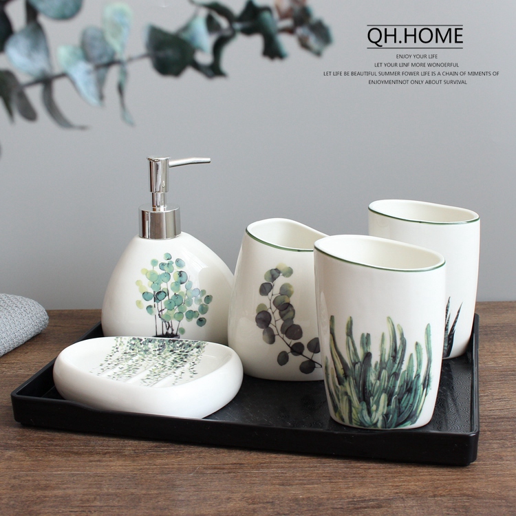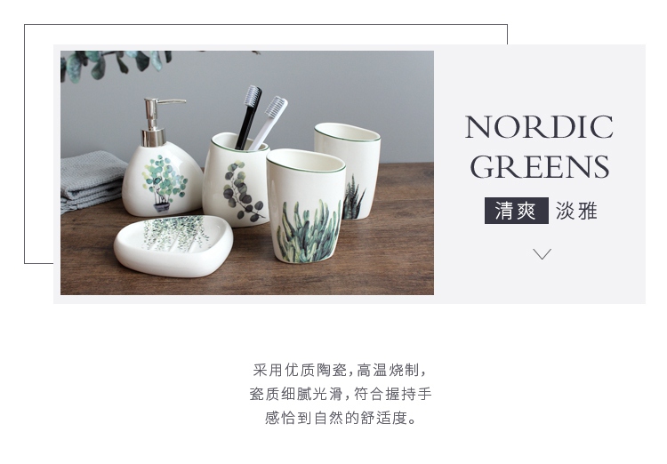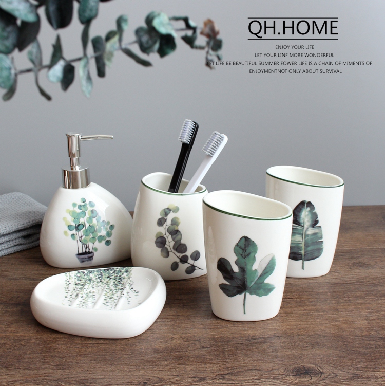卫浴五件套北欧绿植陶瓷洗漱六件套浴室用品套装结婚洗漱套装