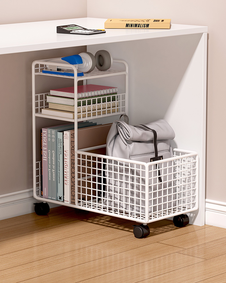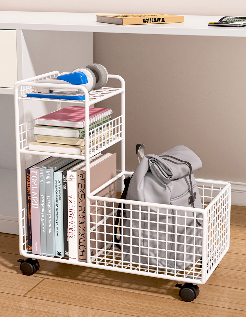 桌下书本收纳箱放书包收纳盒学生书籍办公桌书桌旁书箱可移动滑轮