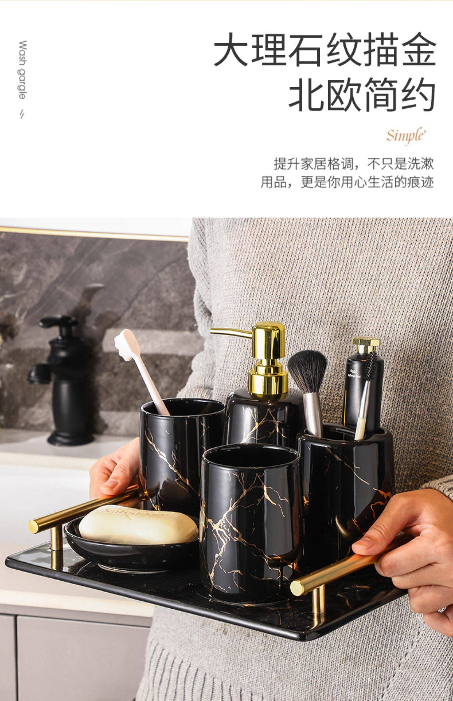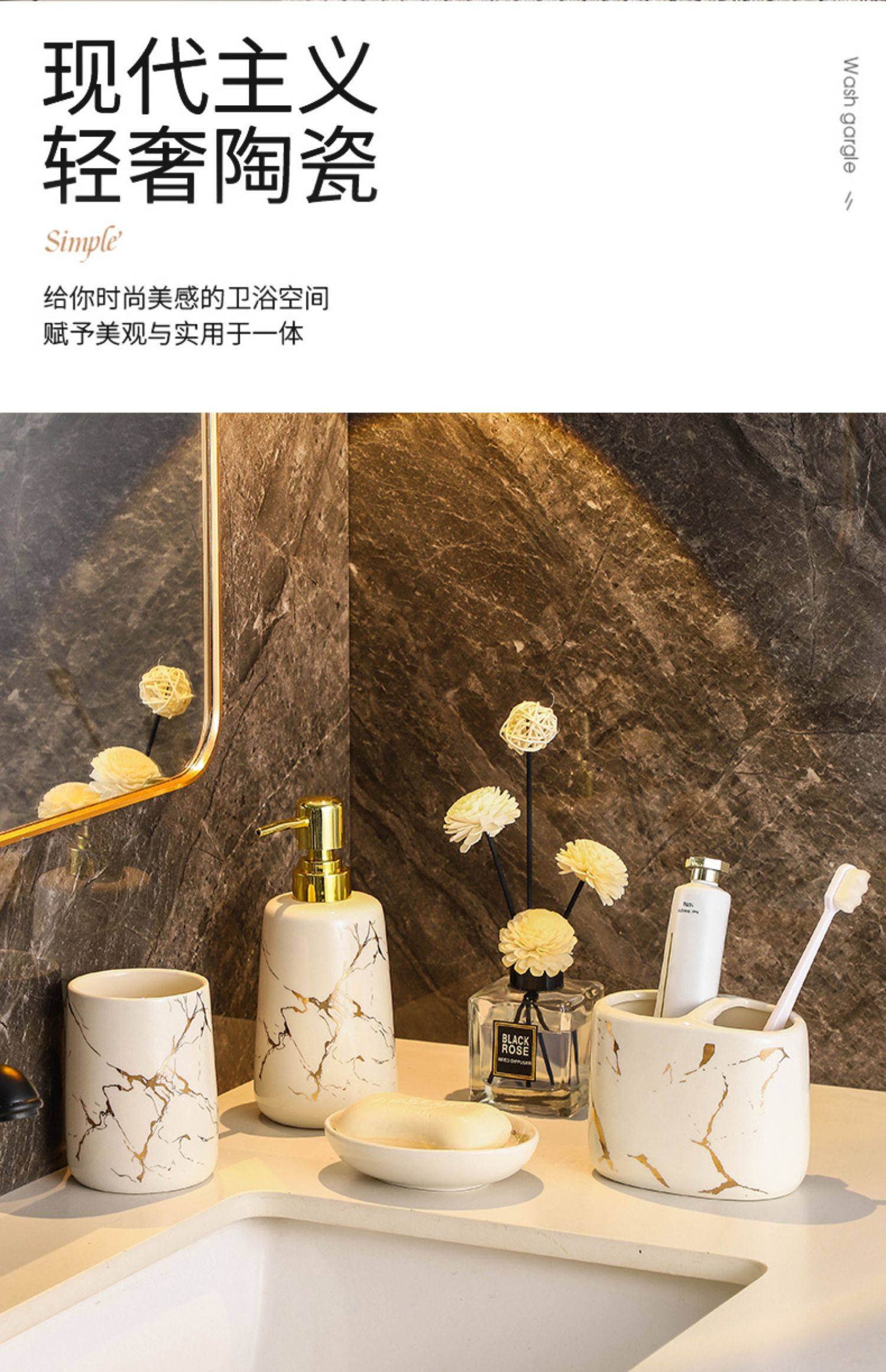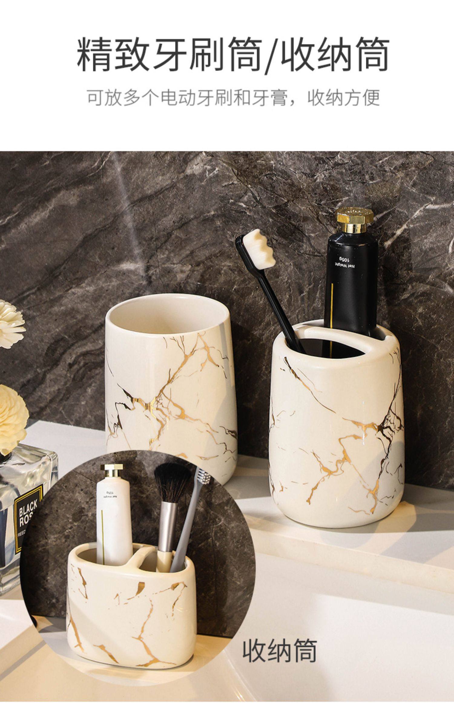 陶瓷ins卫浴五件套洗漱套装浴室用品卫生间漱口杯牙刷杯套件轻奢