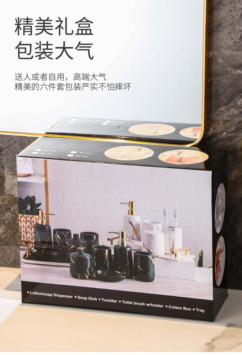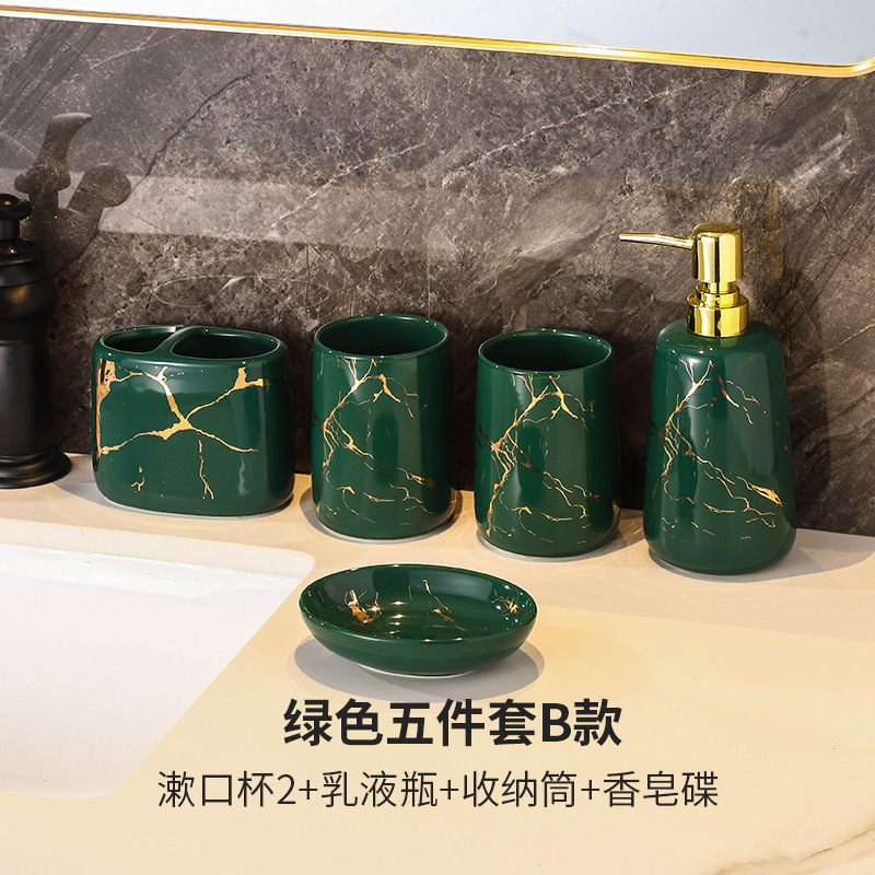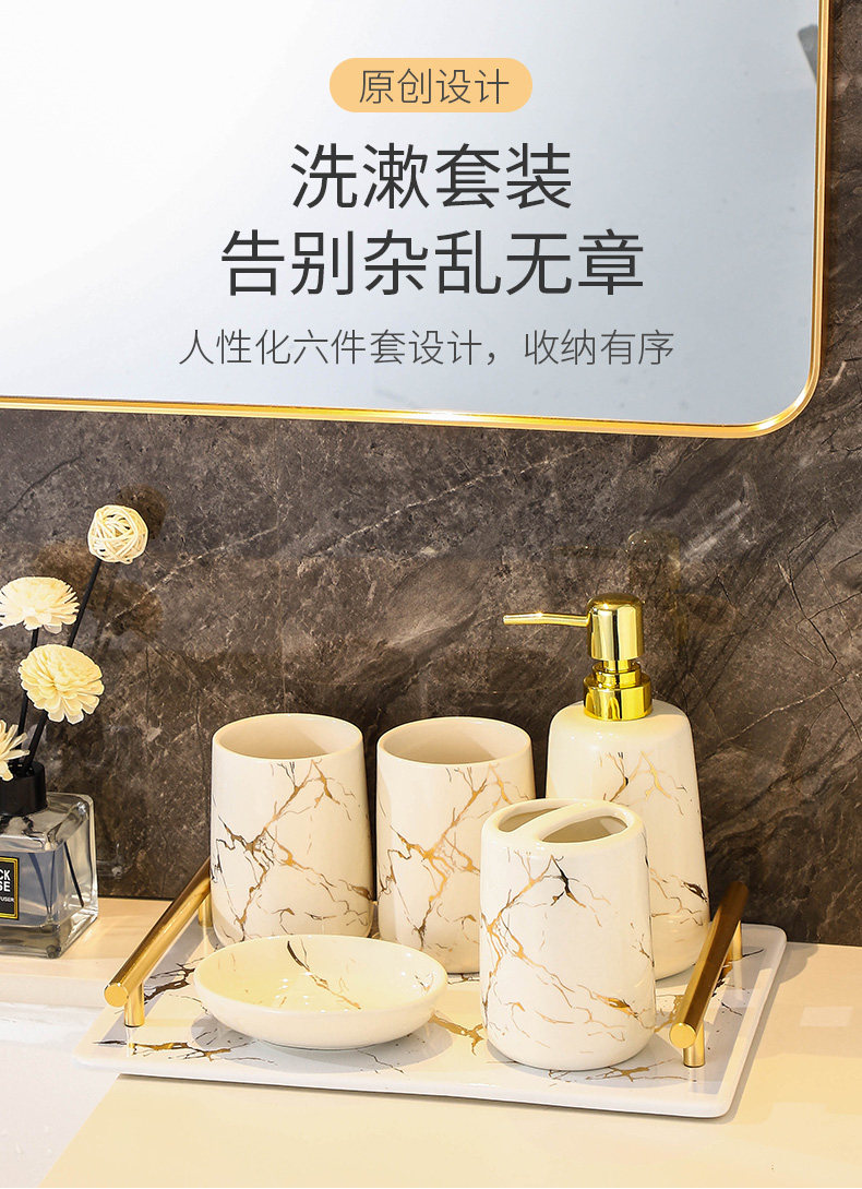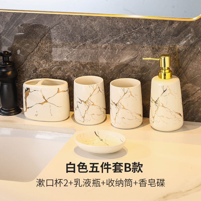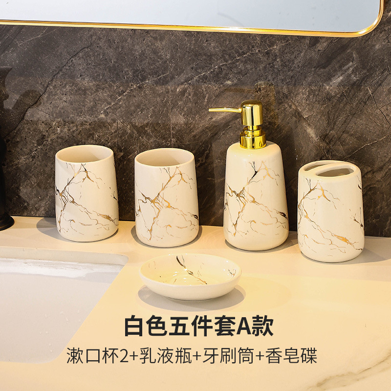 陶瓷ins卫浴五件套洗漱套装浴室用品卫生间漱口杯牙刷杯套件轻奢