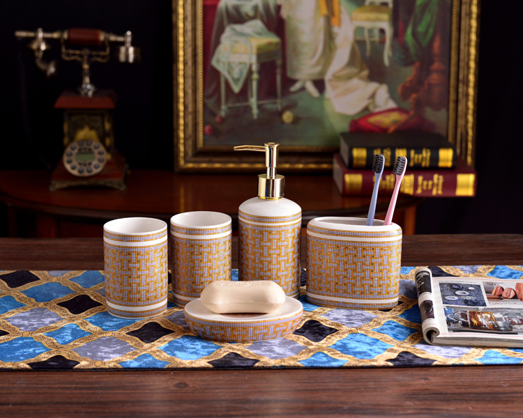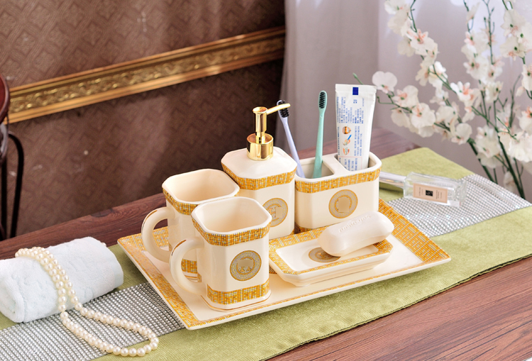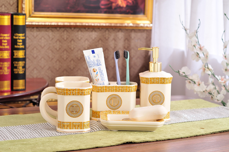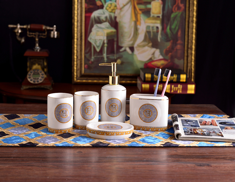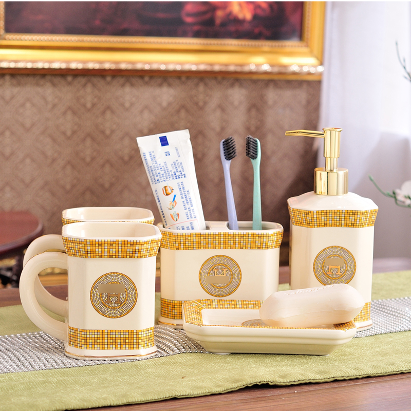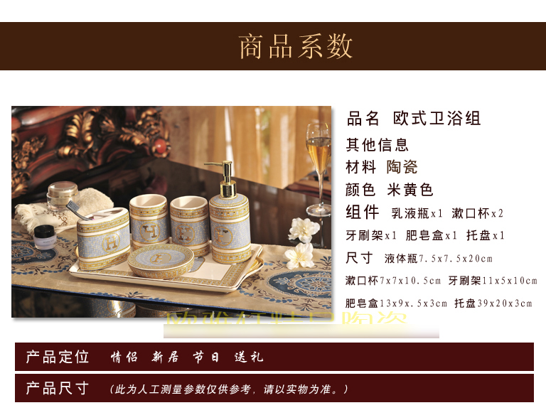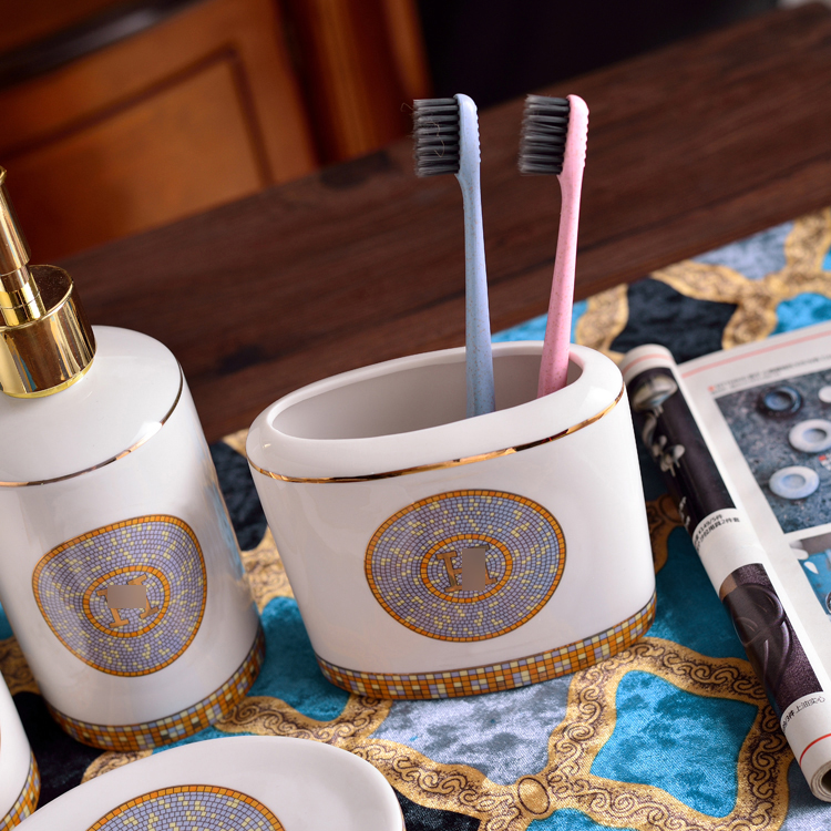 8DWL情侣洗漱套装浴室陶瓷牙架漱口杯牙具刷牙杯欧式卫浴五件套六