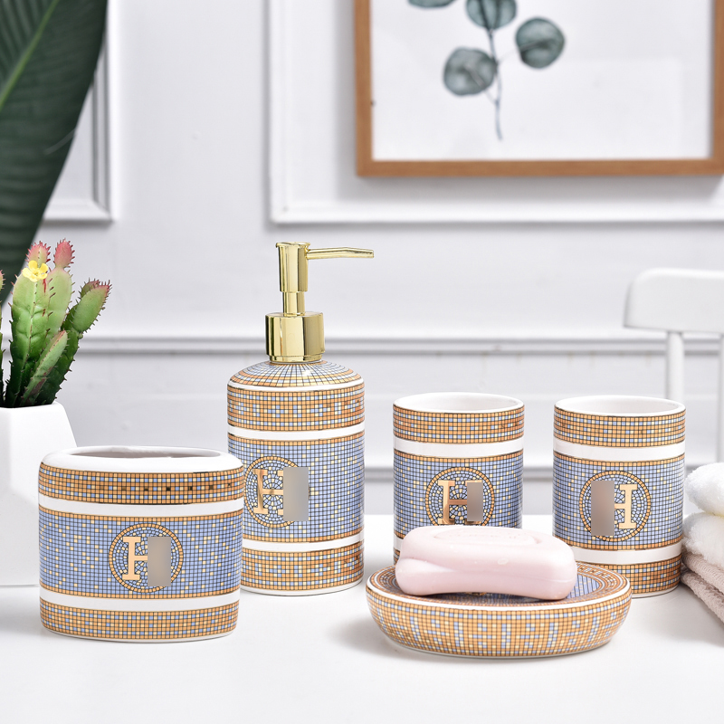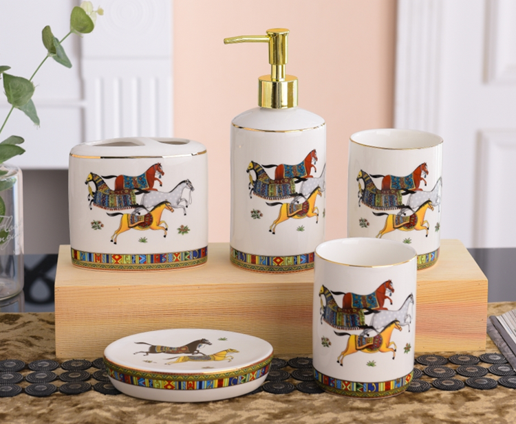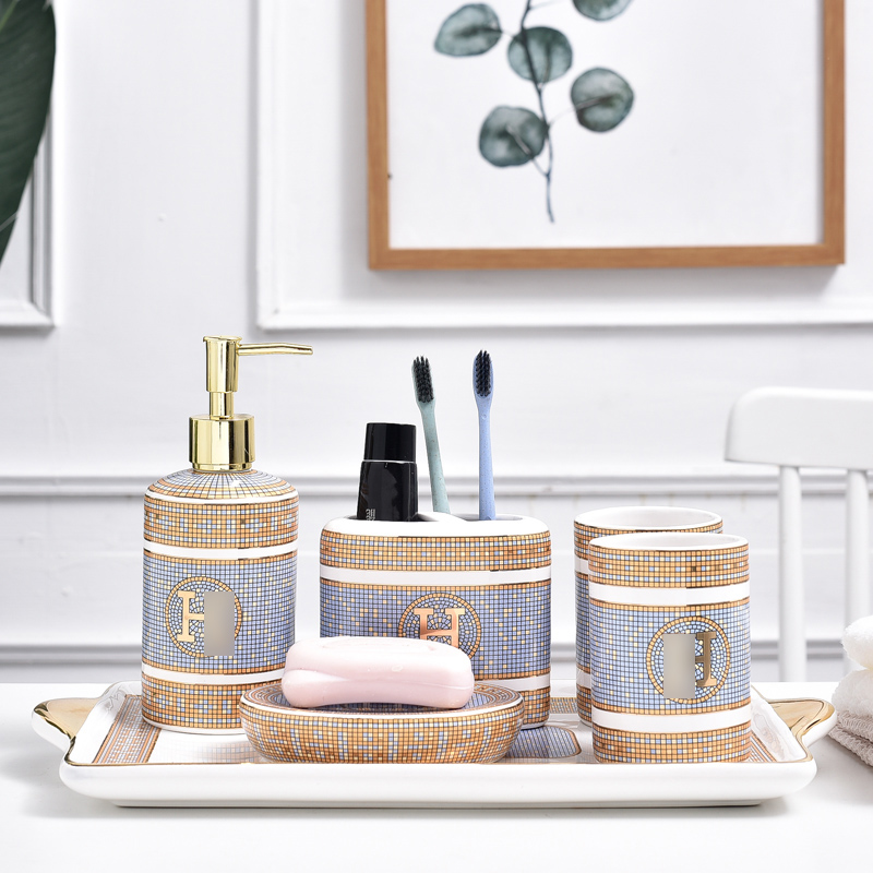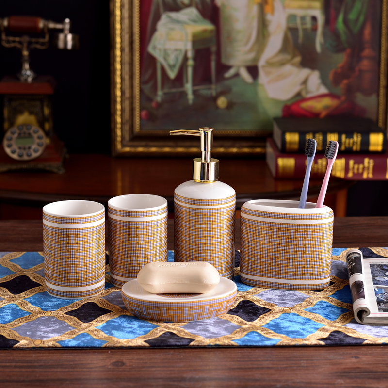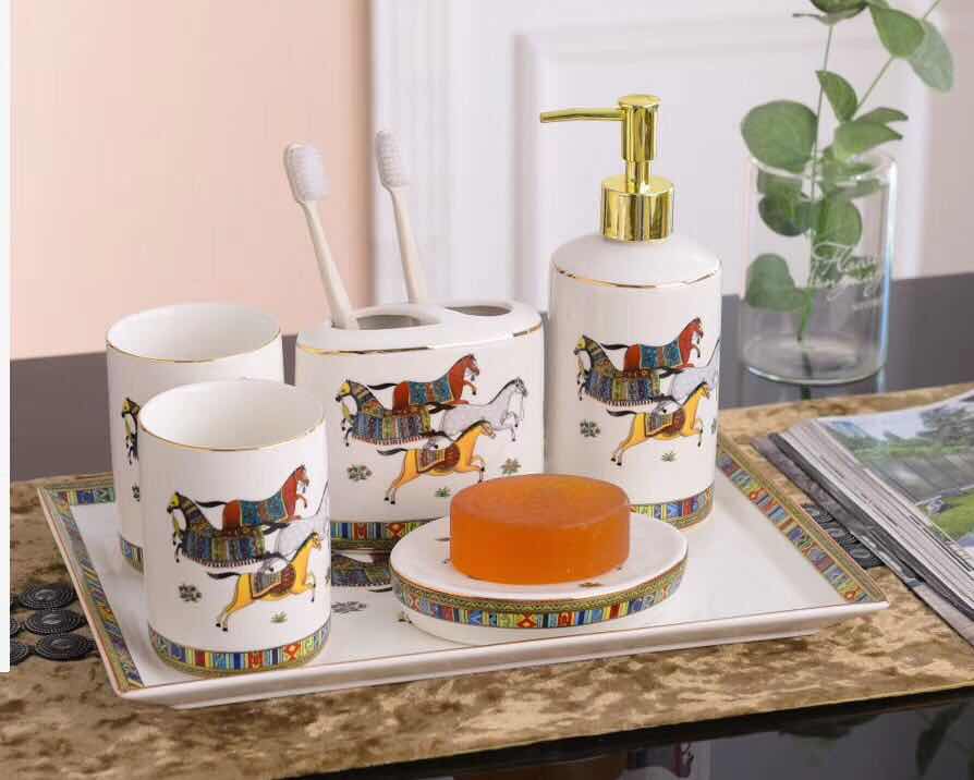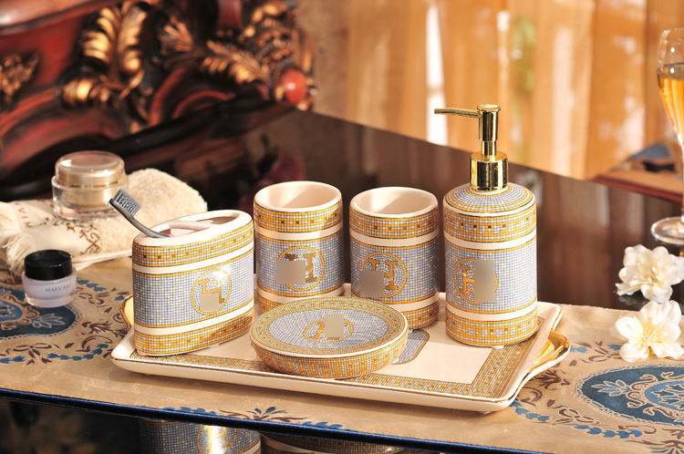 8DWL情侣洗漱套装浴室陶瓷牙架漱口杯牙具刷牙杯欧式卫浴五件套六