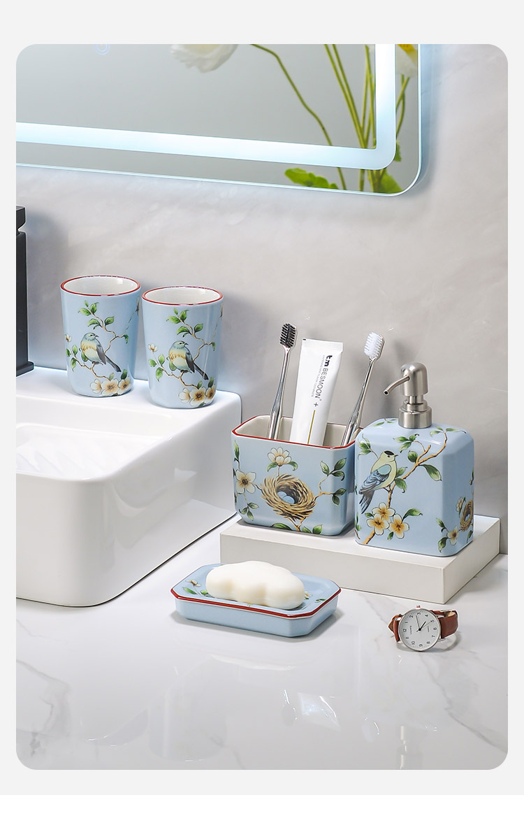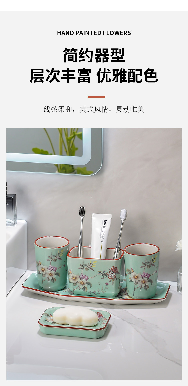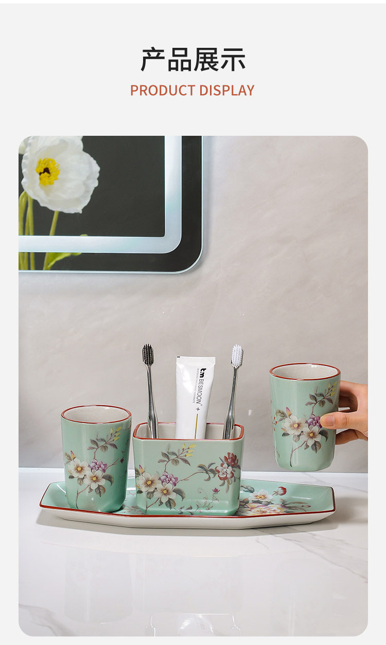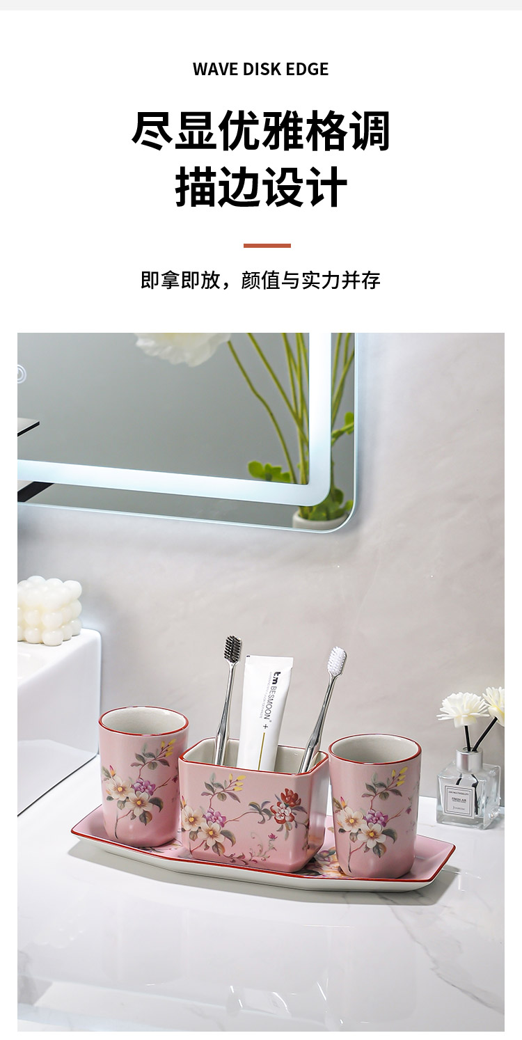 美式高温陶瓷漱口杯套装浴室洗漱杯四件套五件套六件套刷牙杯套件