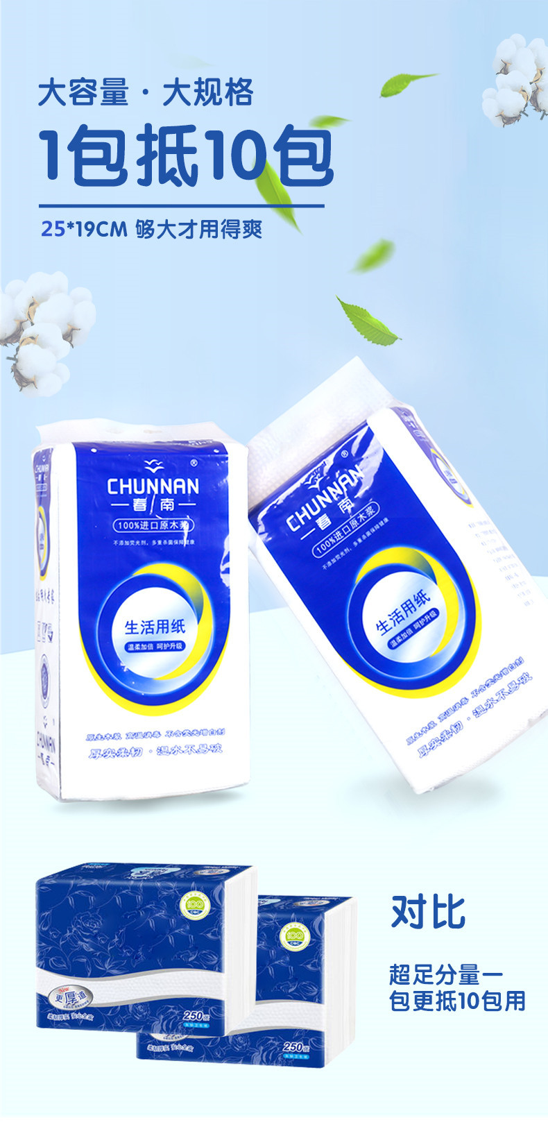 春南抽纸家用大包装大号厕所纸巾可溶于水厕纸加厚厨房纸生活用纸