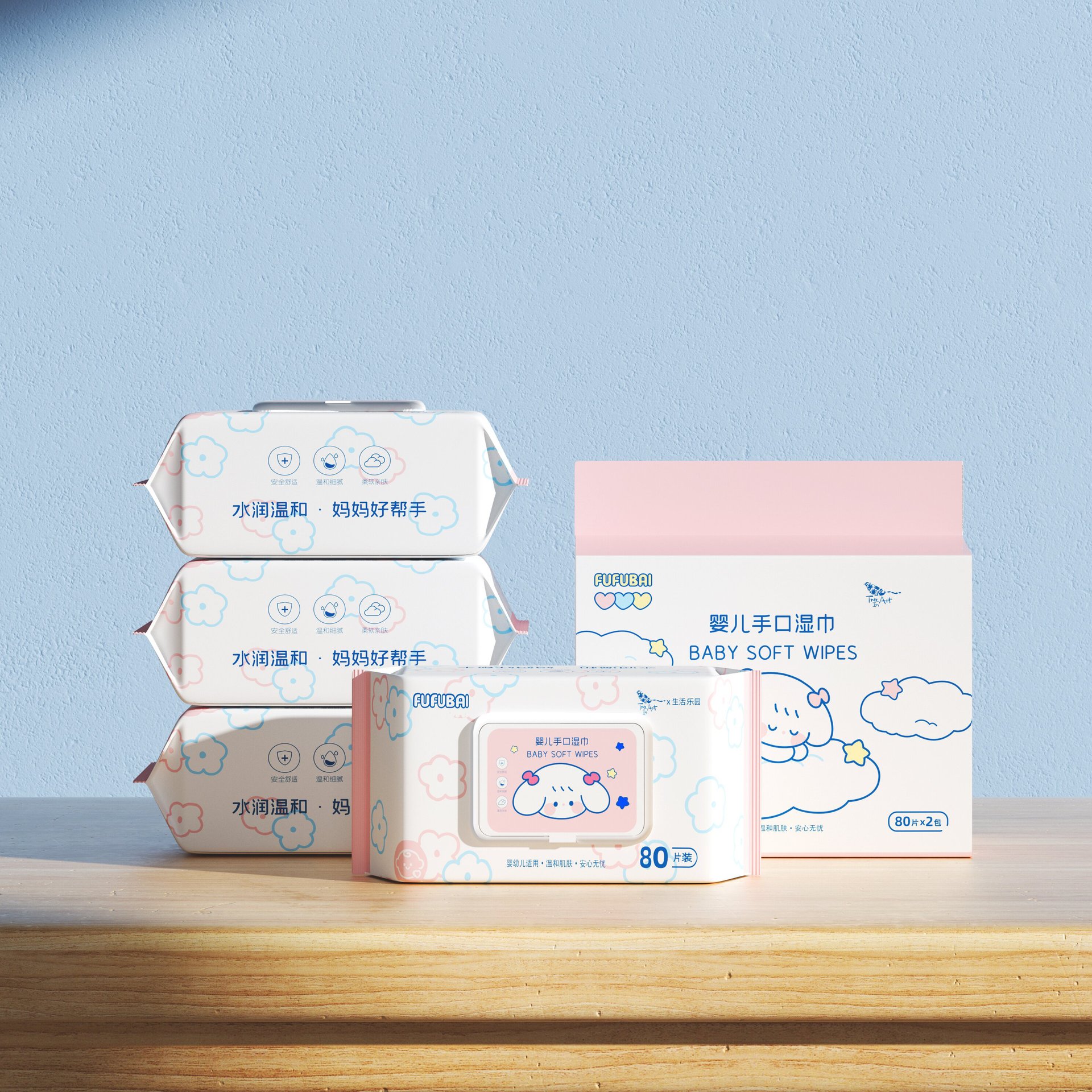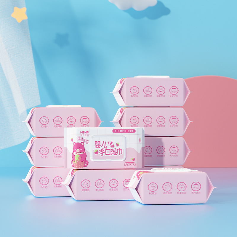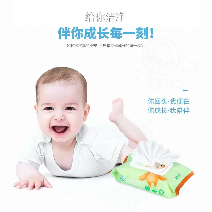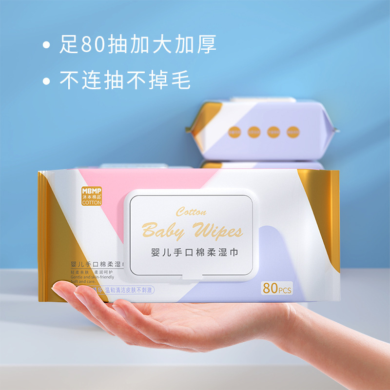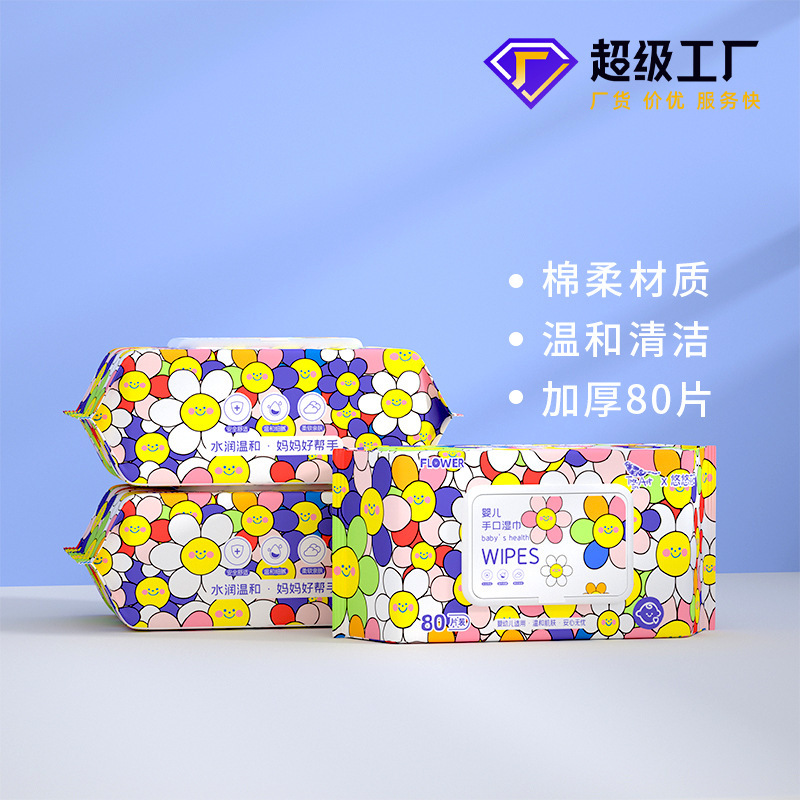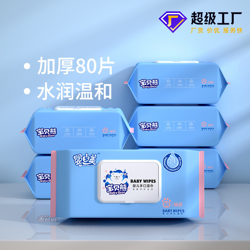 源厂80片婴儿手口湿巾大包加厚宝宝护理清洁湿纸巾珍珠纹儿童湿巾