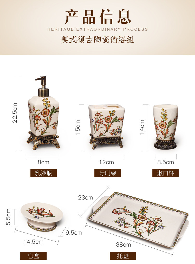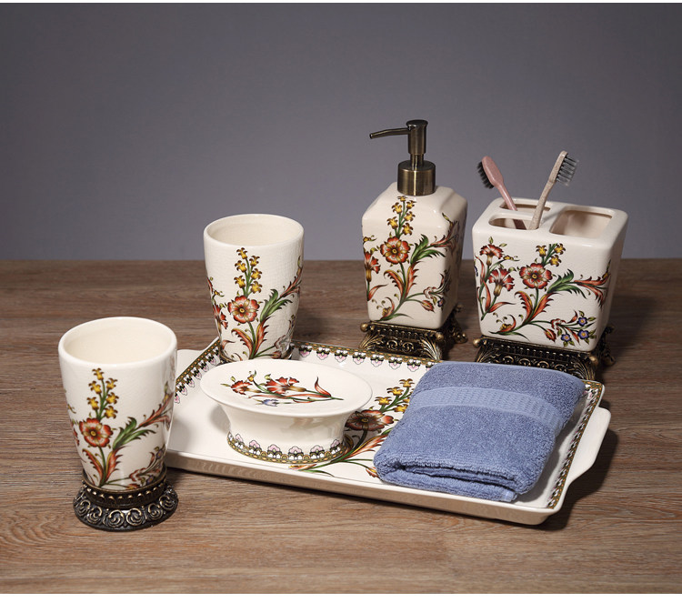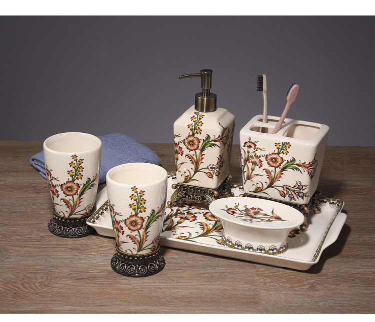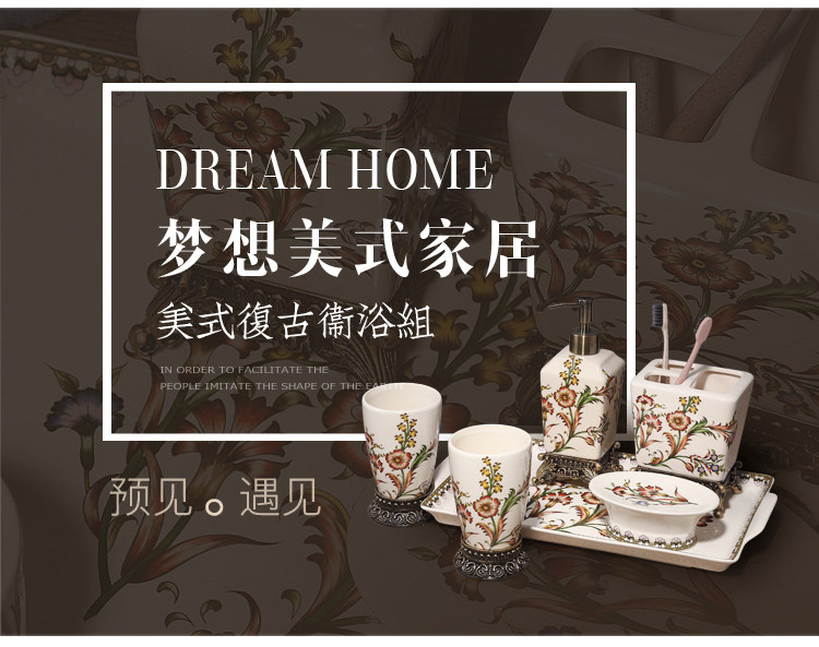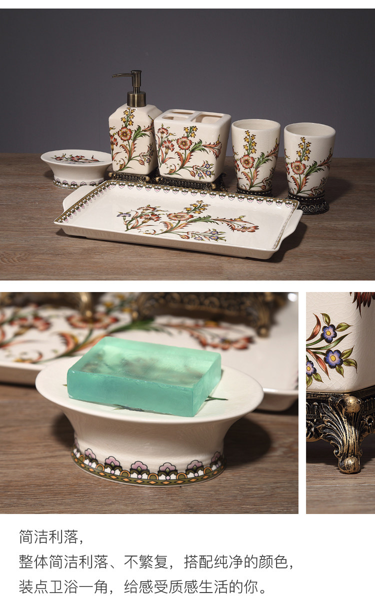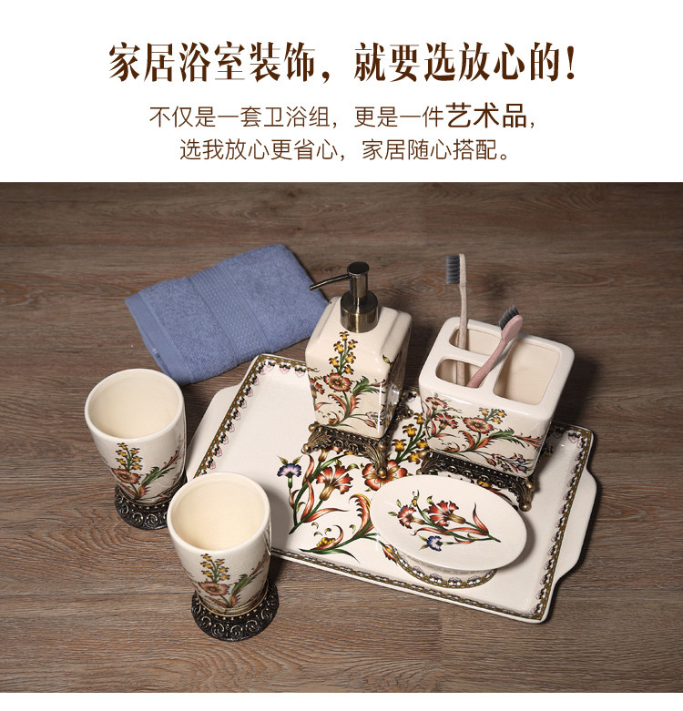 批发欧式裂纹陶瓷卫浴五件套洗手间牙刷杯美式简约漱口杯洗漱套装