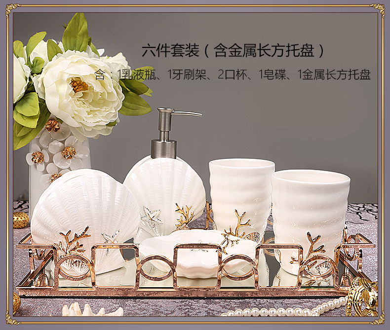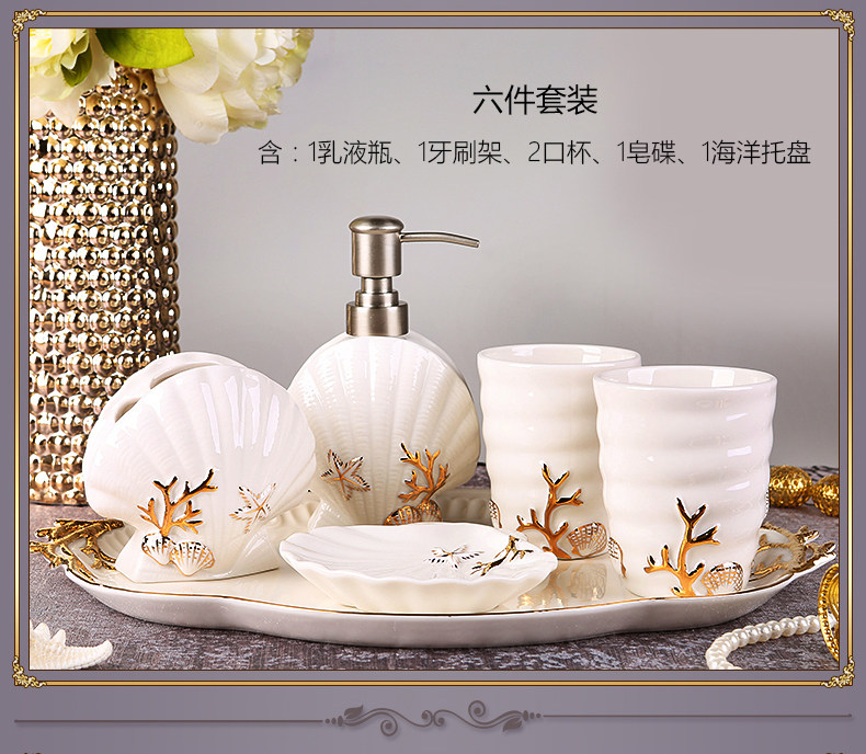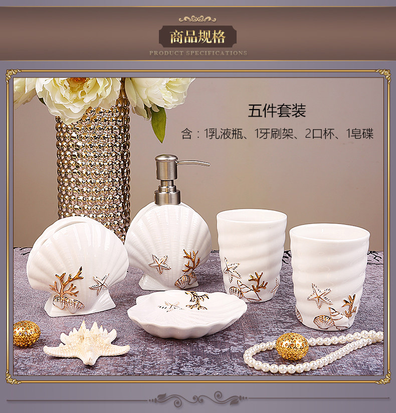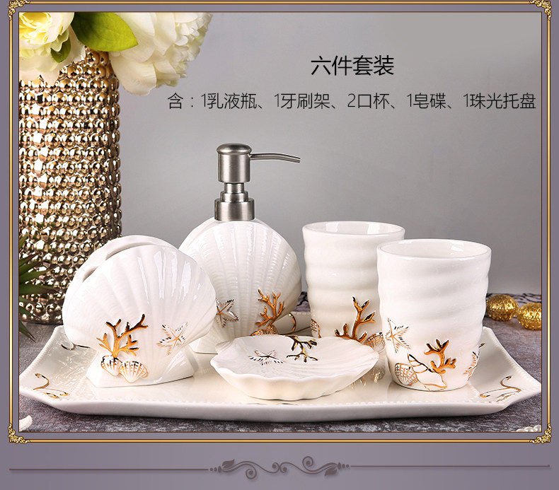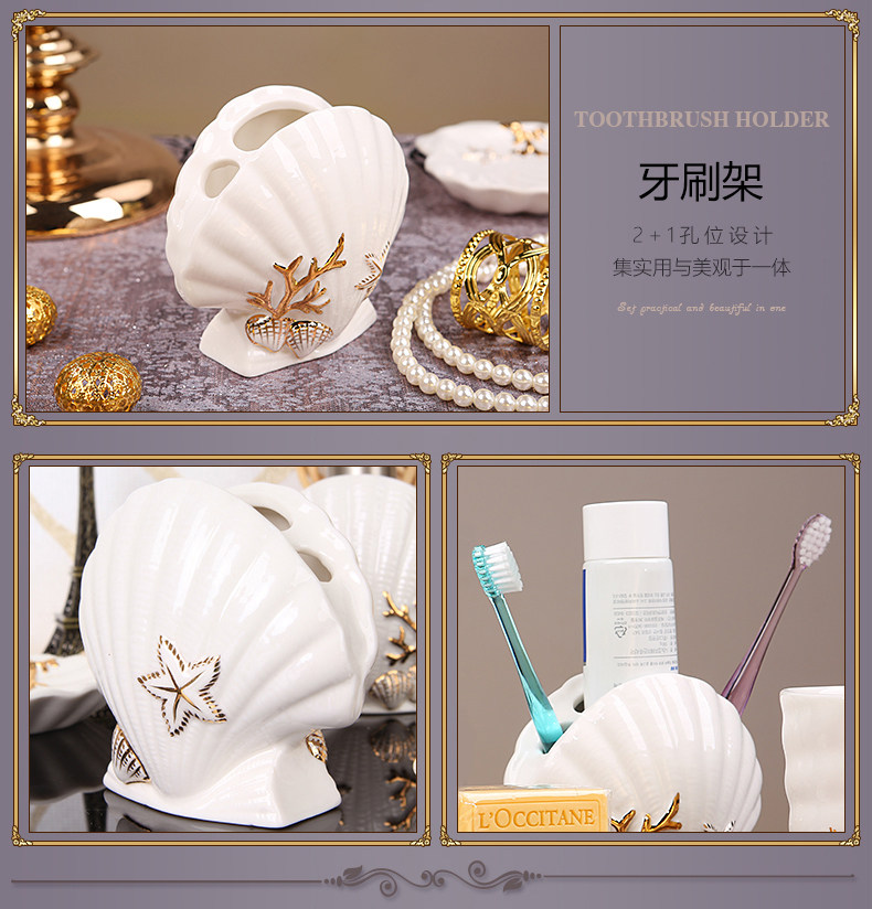1VPR海洋贝壳陶瓷卫浴五件套装洗漱用品牙刷架漱口杯乔迁新居结婚