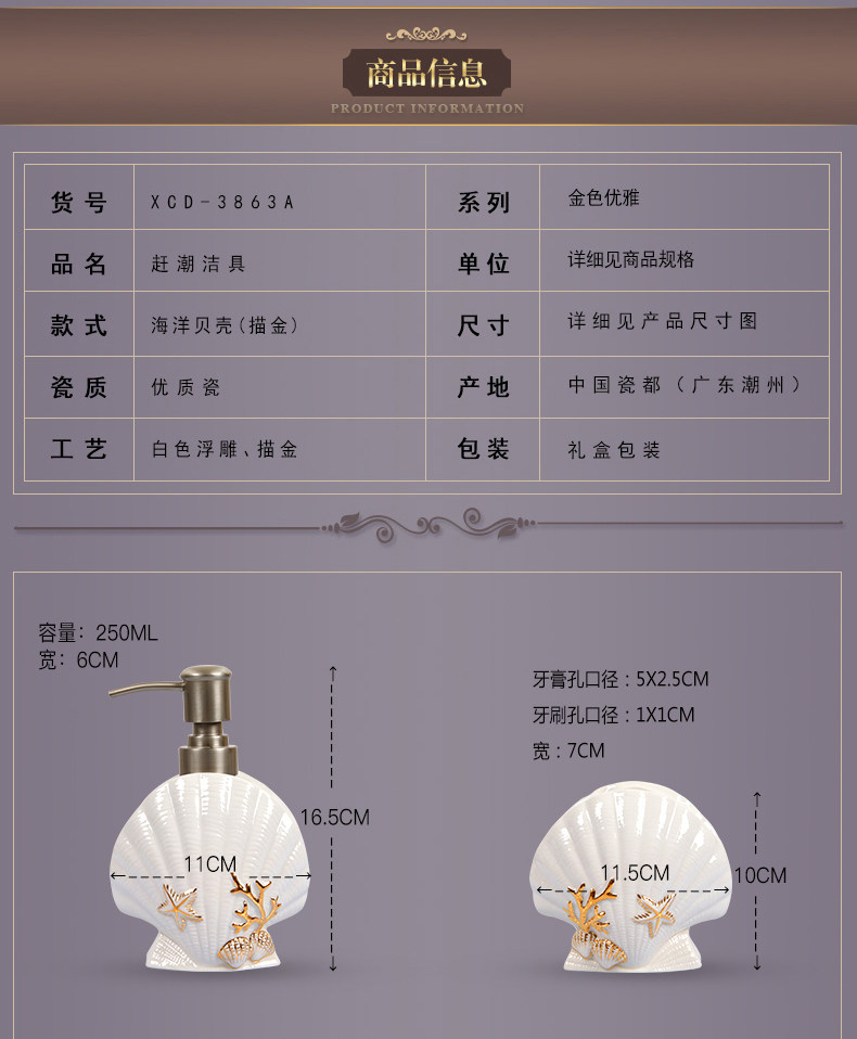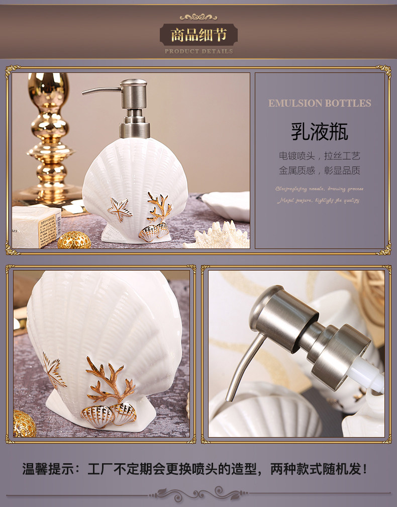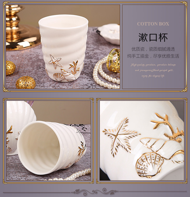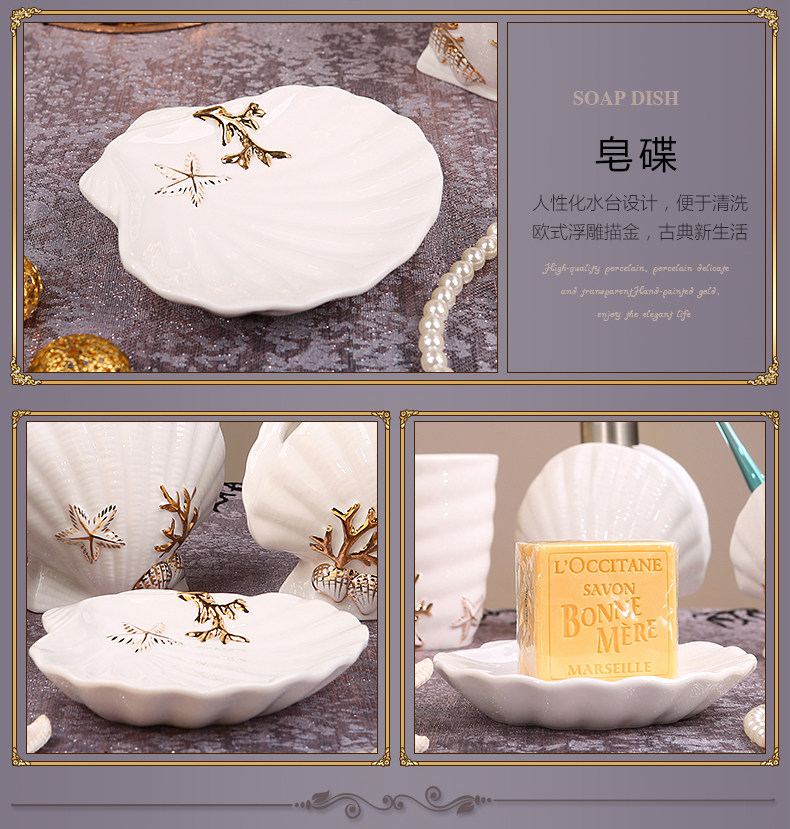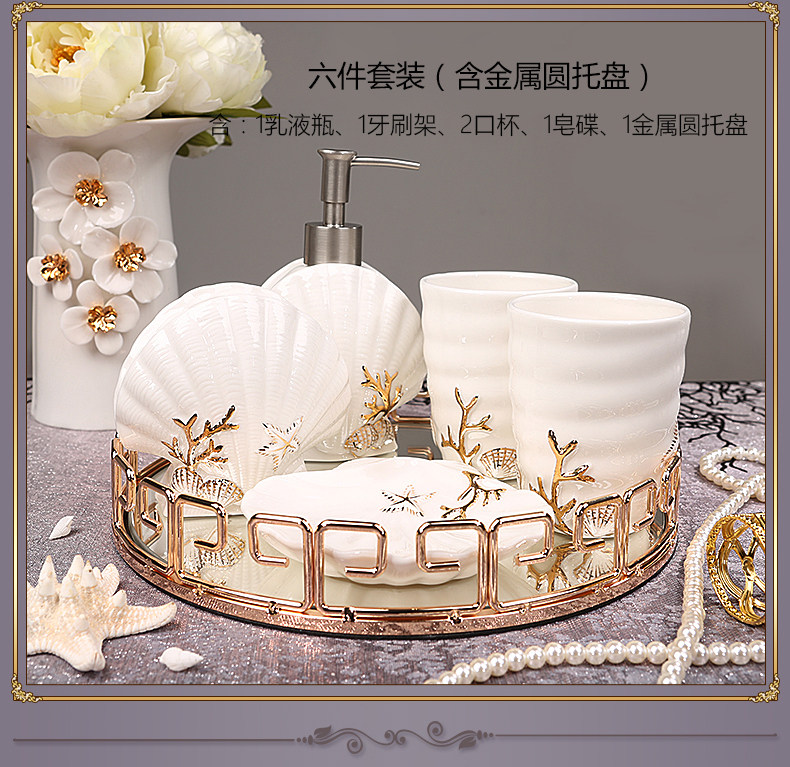 1VPR海洋贝壳陶瓷卫浴五件套装洗漱用品牙刷架漱口杯乔迁新居结婚