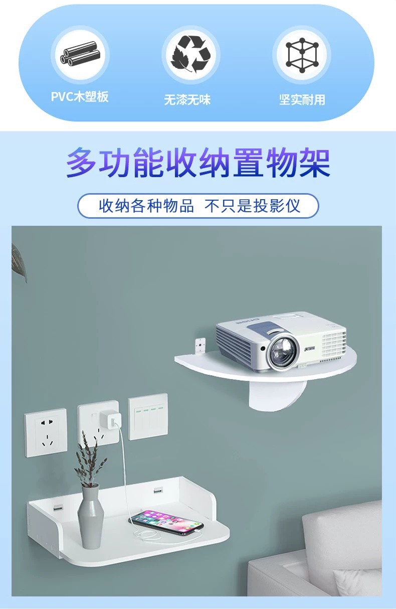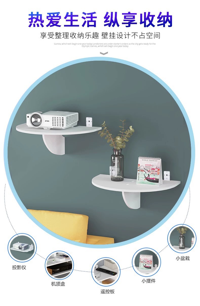 wifi路由器机顶盒免打孔置物架投影仪支架床头壁挂托盘小型投影机