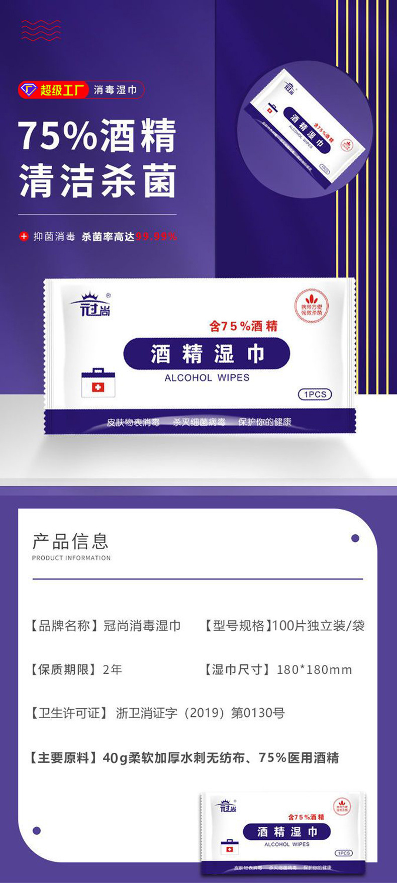 一次性单片装酒精消毒湿巾现货 75%乙醇消毒湿巾纸学生消毒湿纸巾