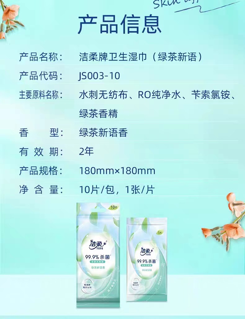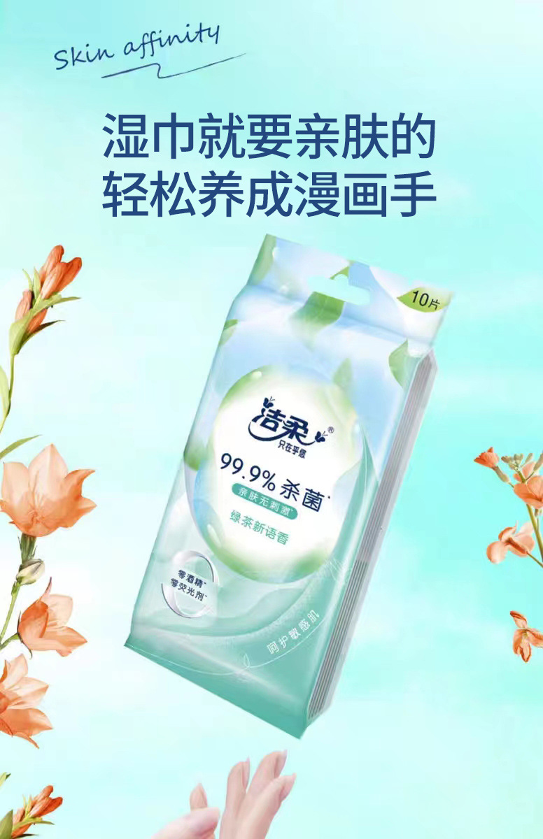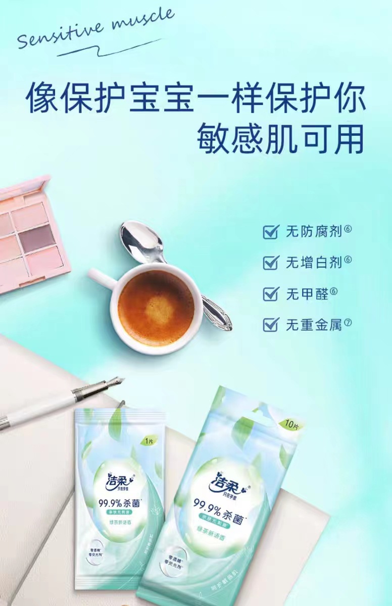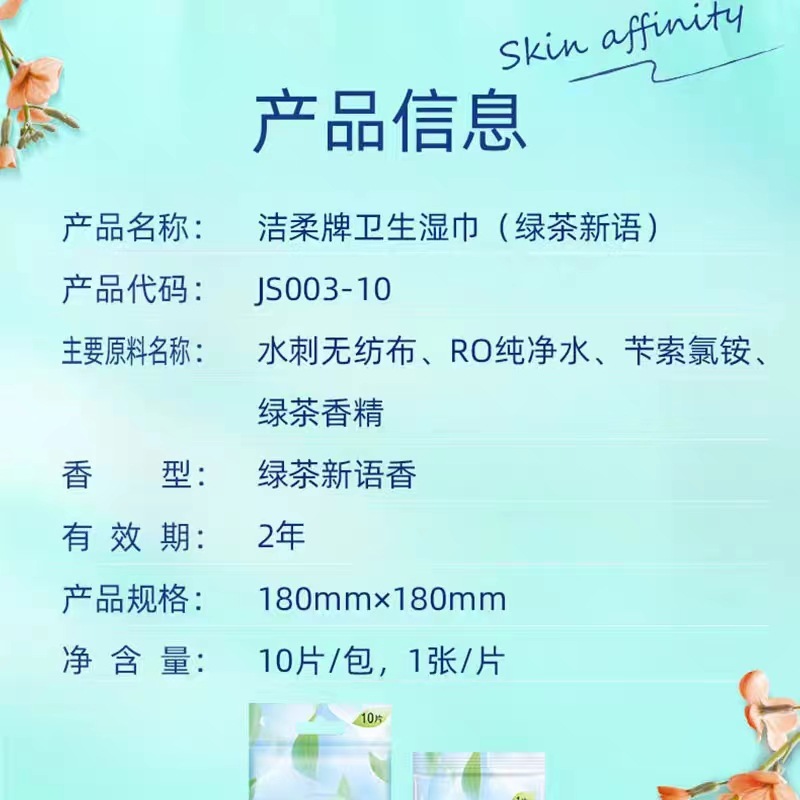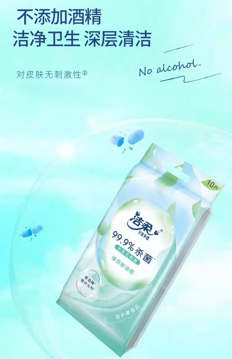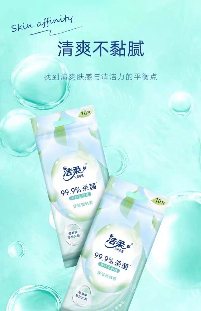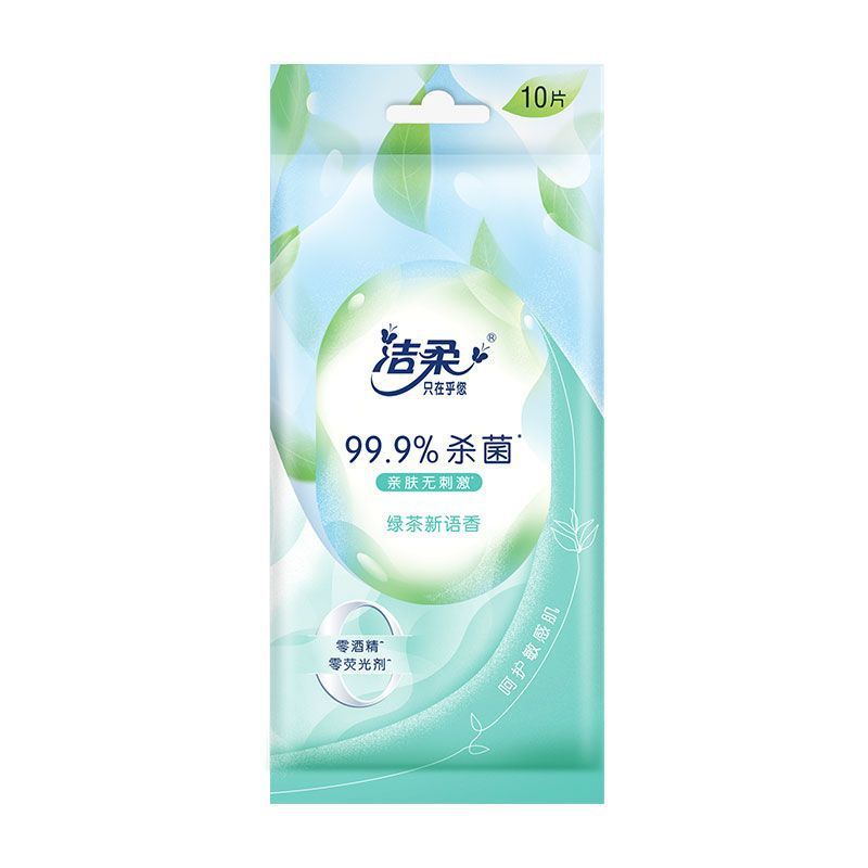 洁柔湿巾不含酒精绿茶香母婴适用湿纸巾10片/包独立包装便携实惠