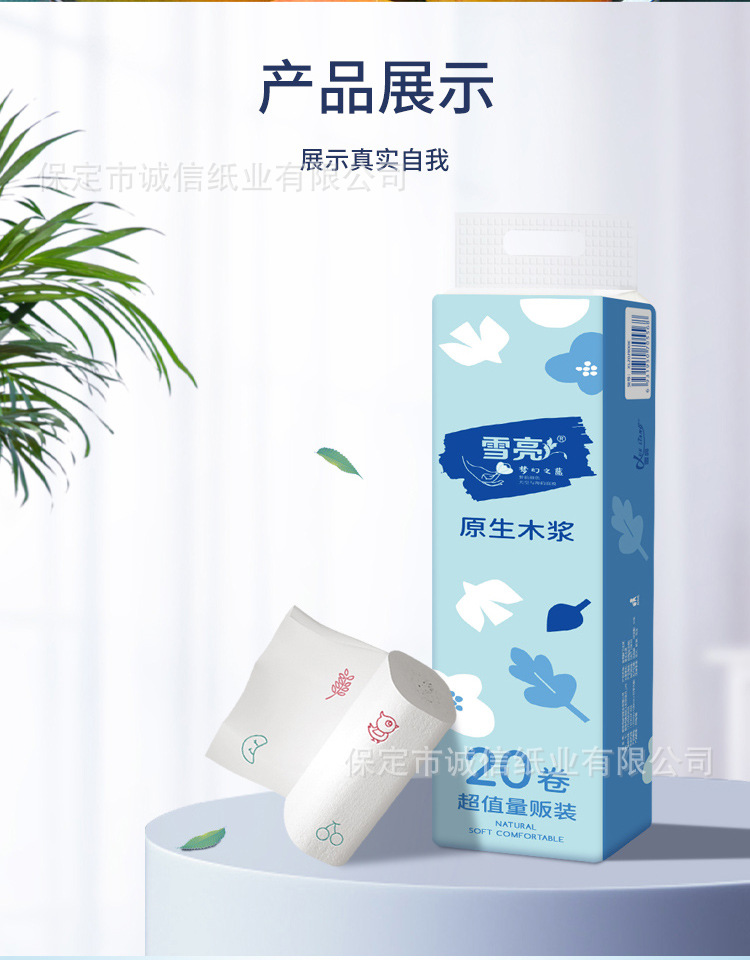 雪亮卫生纸卷纸家用实惠装原木无芯卷纸厕纸20卷手纸批发一件代发