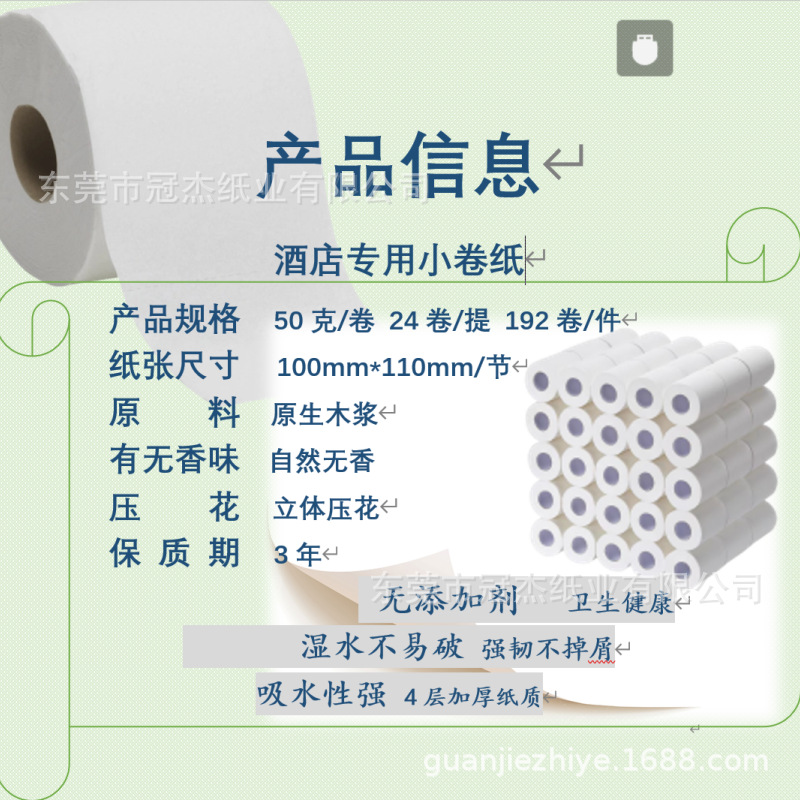 卷筒纸卫生纸50克厕纸宾馆客房专用小卷纸原生木浆商务用纸酒店