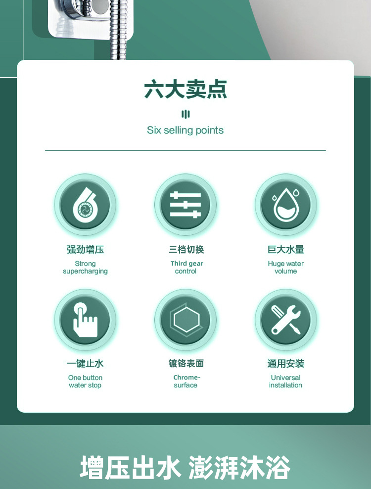 增压淋浴花洒喷头套装家用洗澡淋雨加压沐浴热水器软管浴霸莲 屋