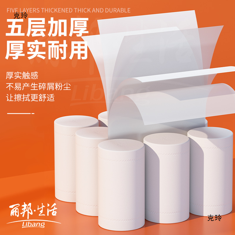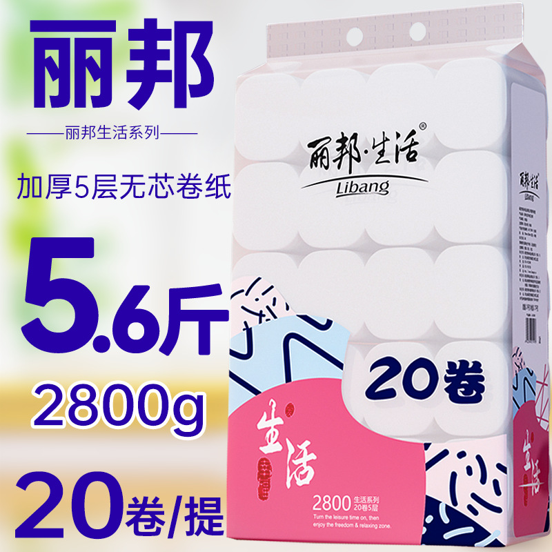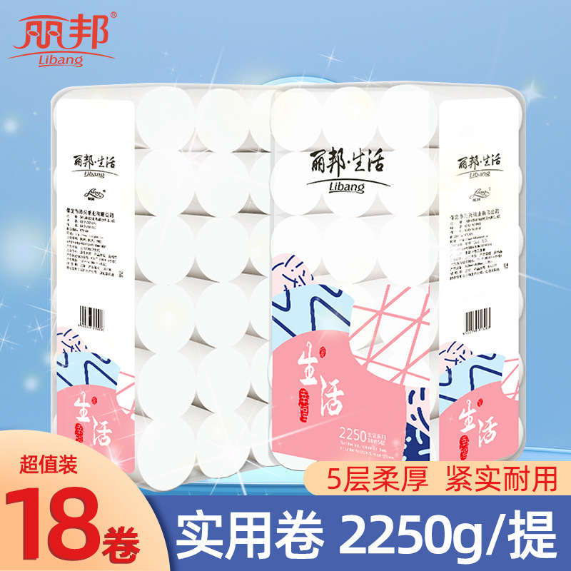 丽邦5层卫生纸卷纸家庭实惠装纸巾卷筒纸无芯手纸宿舍厕纸18卷