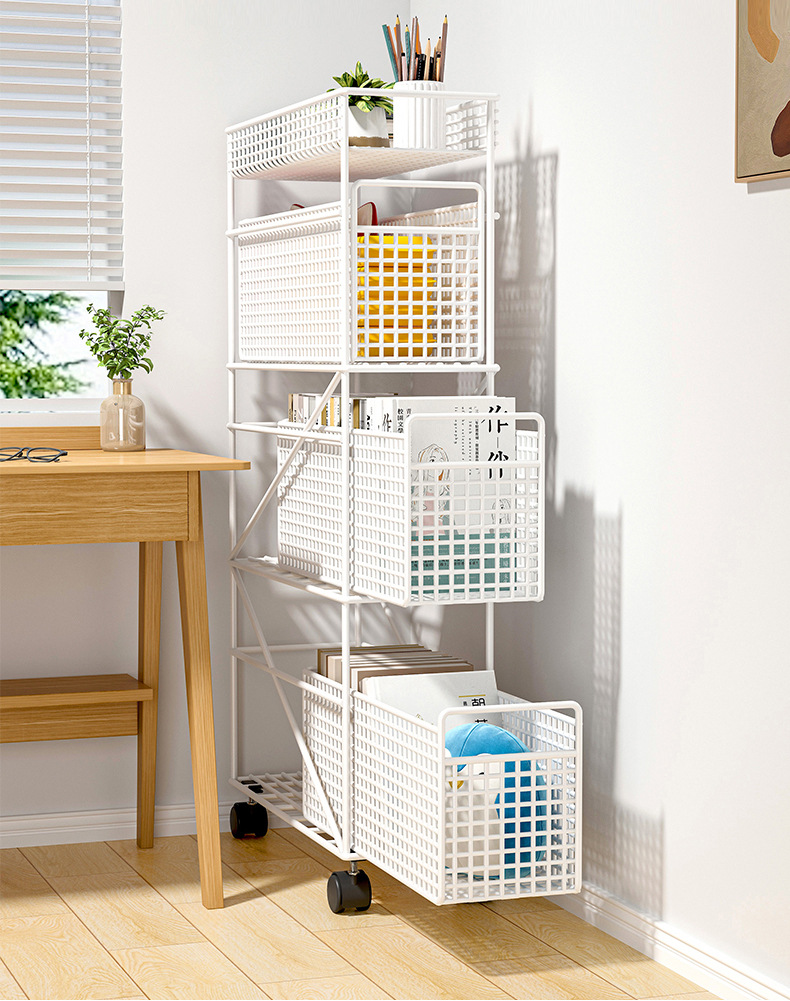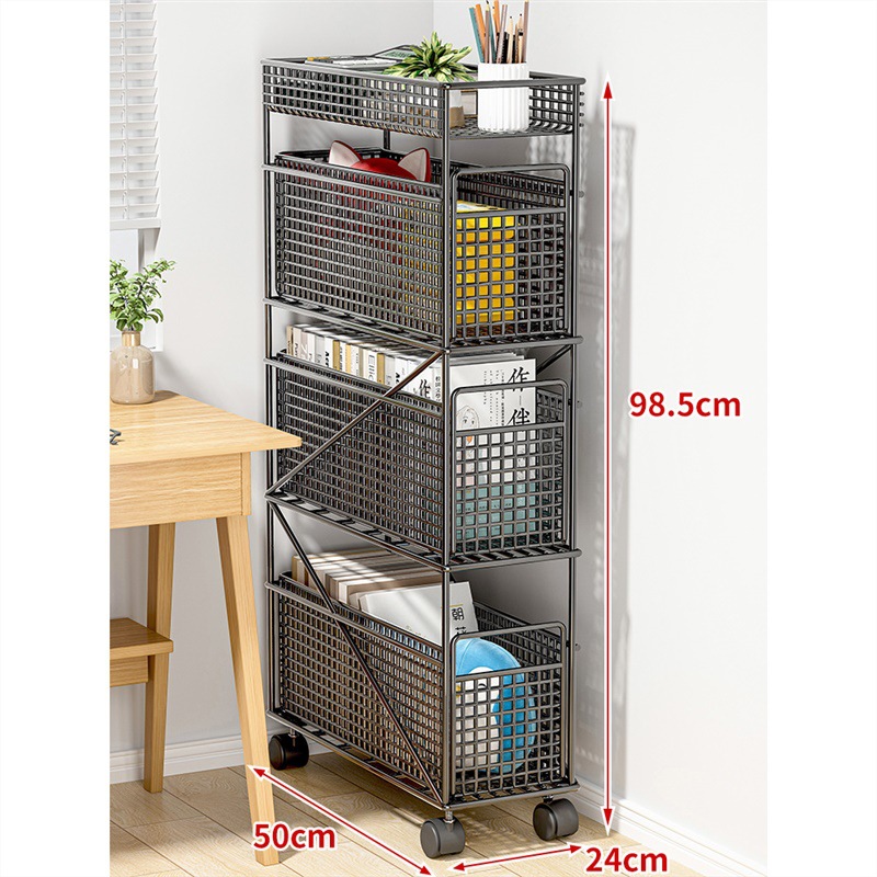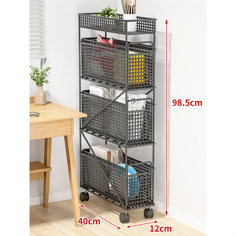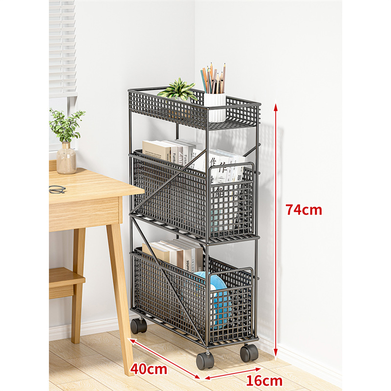 带轮置物架缝隙客厅书房书架夹缝儿童可移动铁艺简易书柜收纳多层