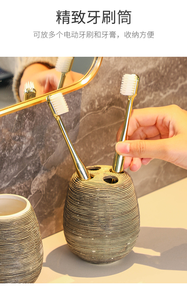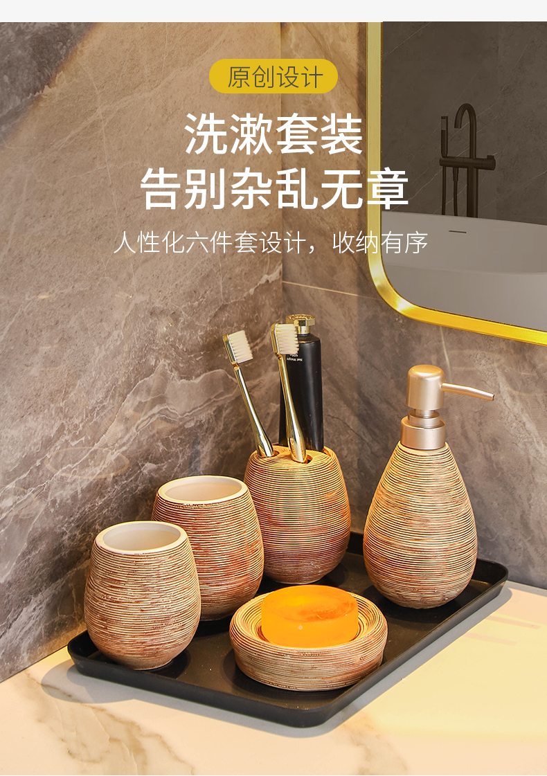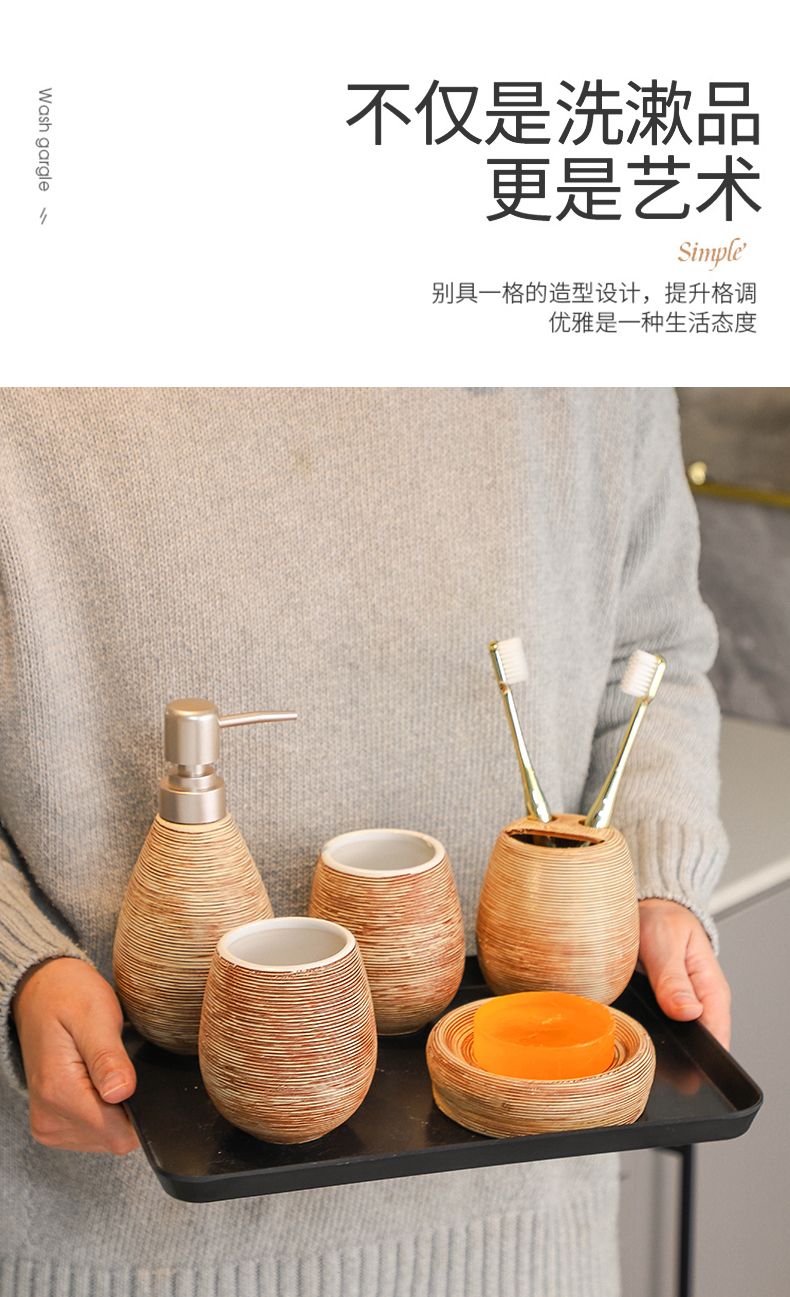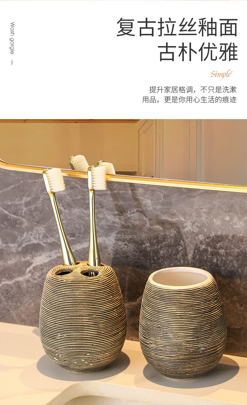 卫浴五件套手工复古拉丝陶瓷洗漱浴室卫生间用品套装结婚洗漱套装