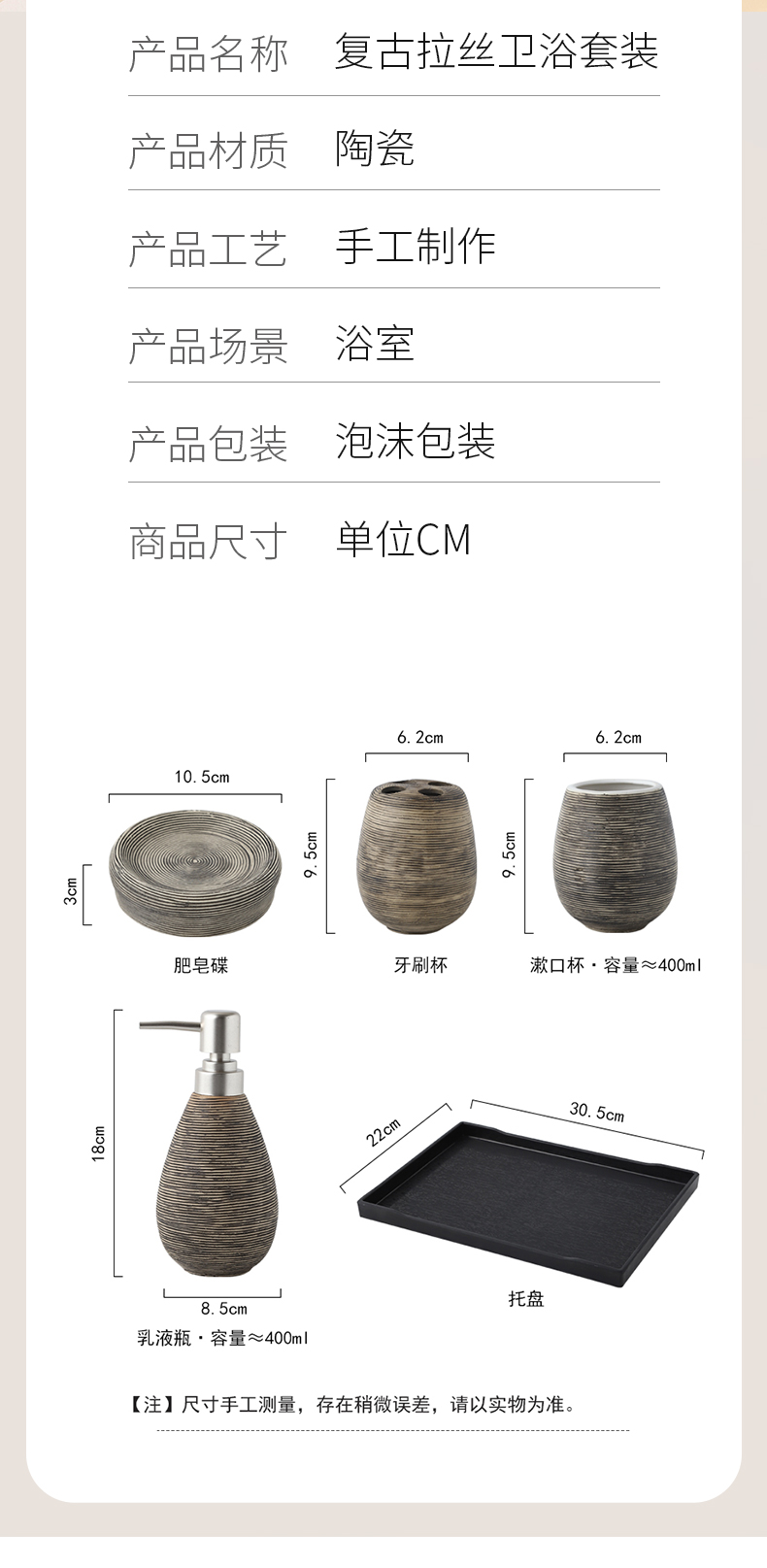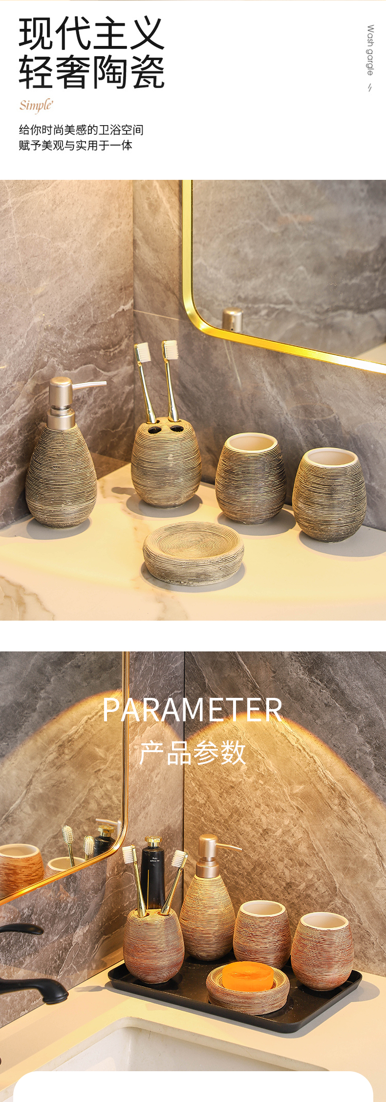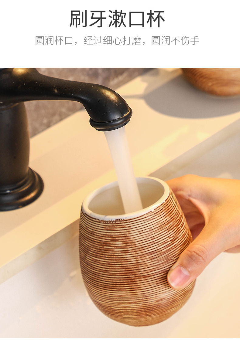 卫浴五件套手工复古拉丝陶瓷洗漱浴室卫生间用品套装结婚洗漱套装