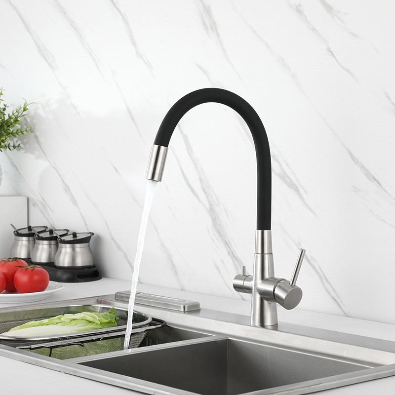 俄罗斯厨房三合一净水龙头洗菜盆水槽冷热纯净水不锈钢硅胶龙头
