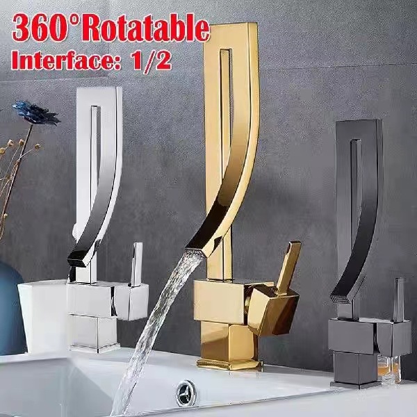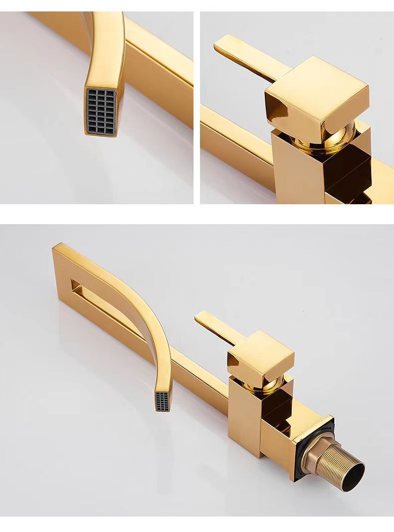 欧美全铜面盆冷热水龙头 酒店卫生间浴室柜金色四方360旋转水龙头