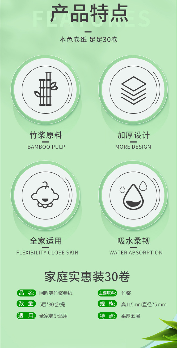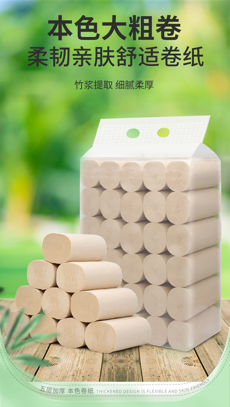 竹浆本色卫生纸5斤30大卷卷纸纸巾卷筒纸家庭装原生家用无芯家用