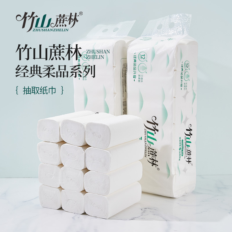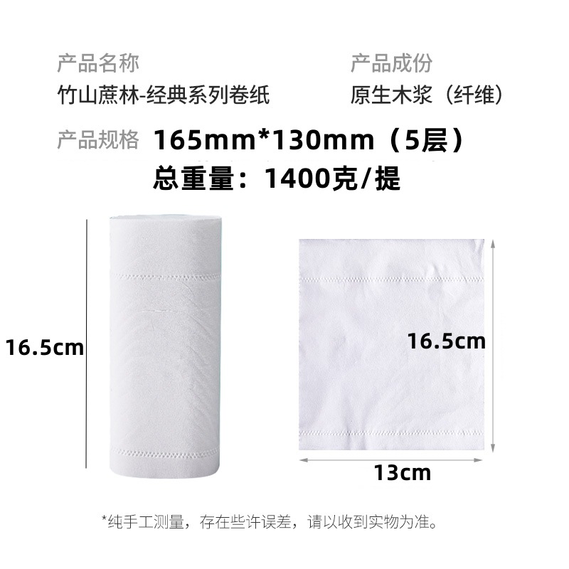 竹山蔗林卫生纸1400g加长无芯卷纸纸巾家用实心卷筒纸实惠装加厚
