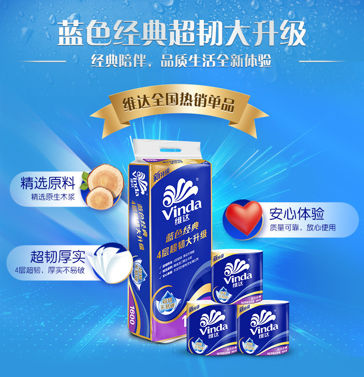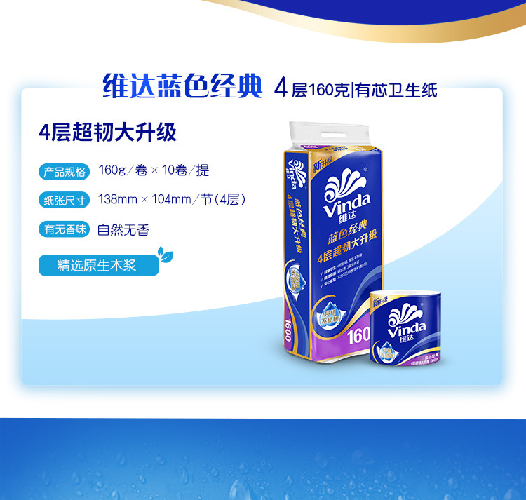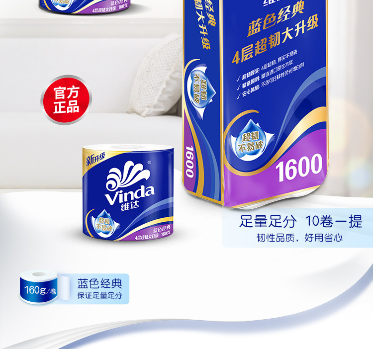 维达1600g卷纸10卷有芯手纸卫生纸家用实惠装批发超韧卷筒纸旗舰