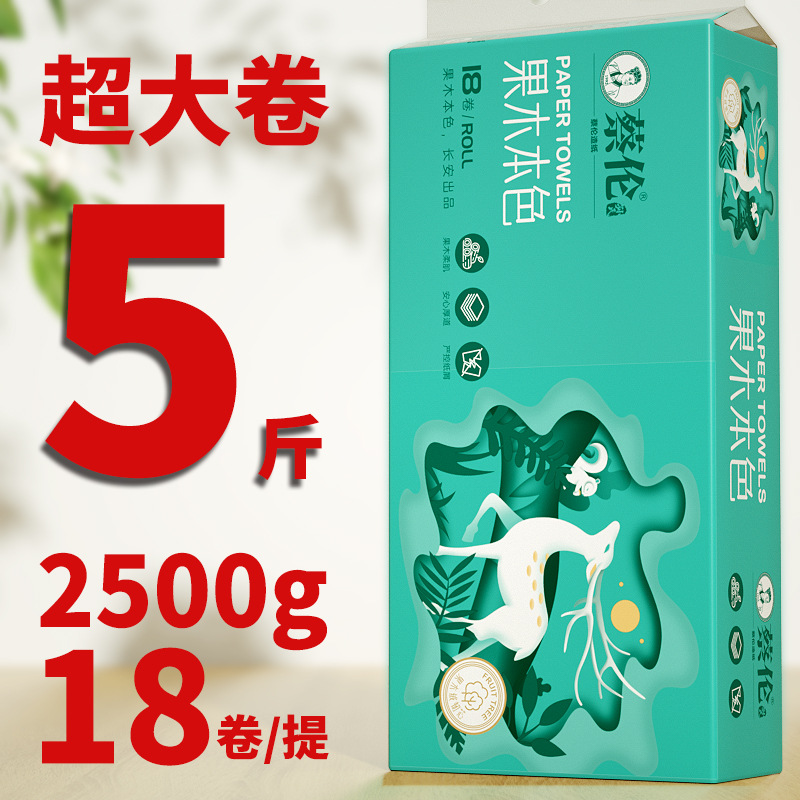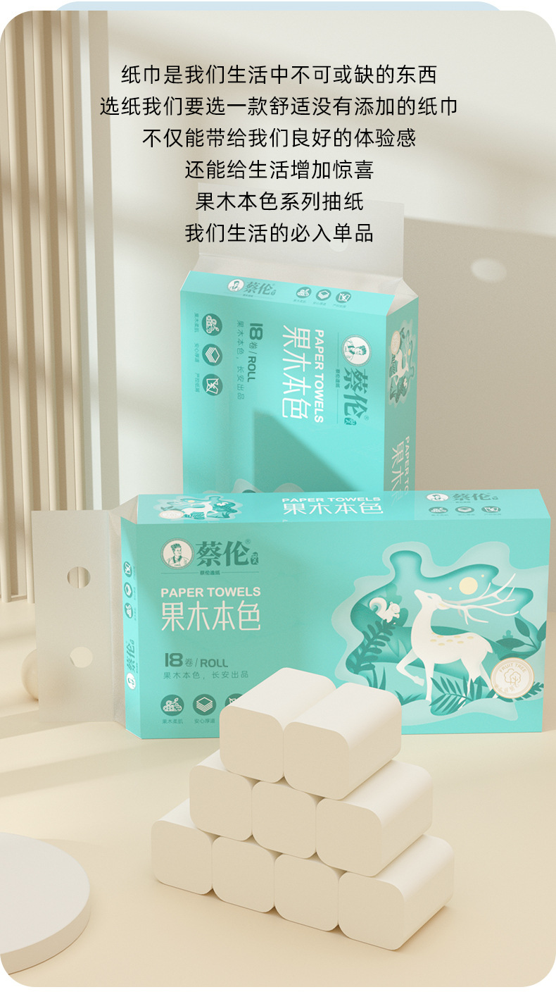 蔡伦小鹿果木原浆卷纸5斤18大卷无荧光不漂白母婴适用分销代发