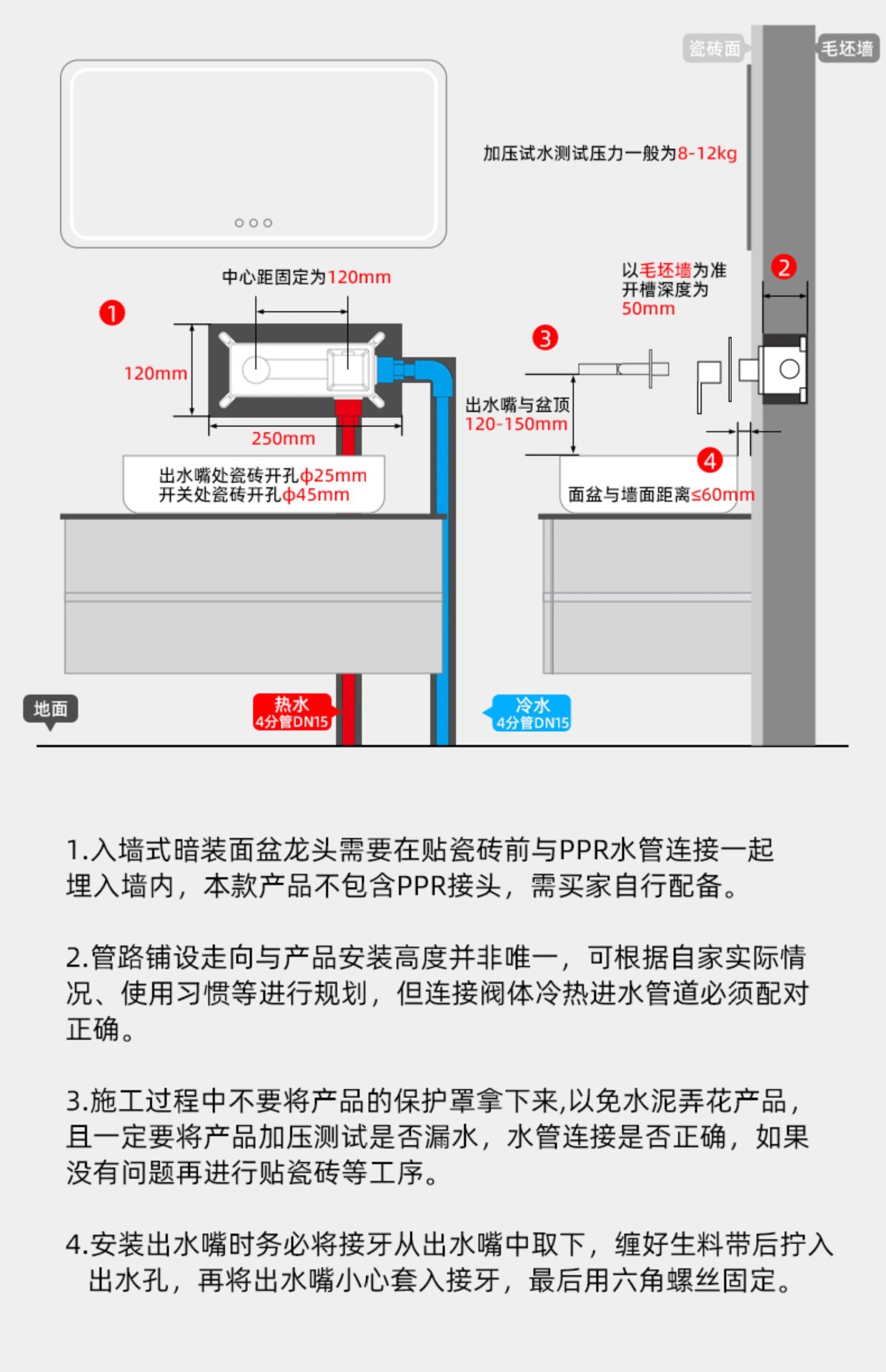 德国枪灰色暗装预埋水龙头铜面盆洗脸盆冷热水隐藏式304不锈钢