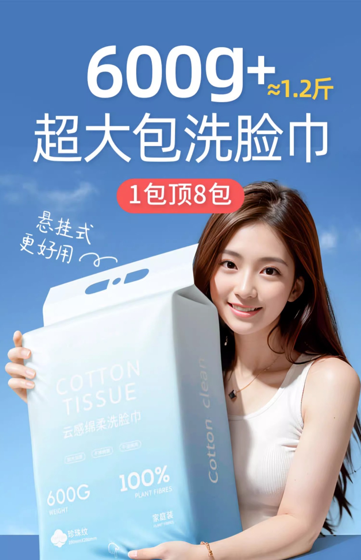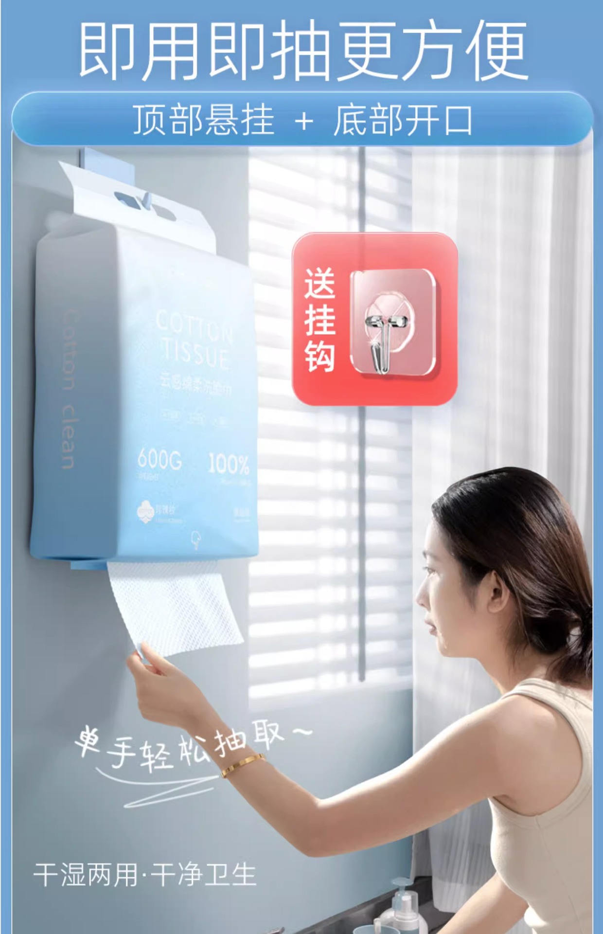一次性洗脸巾超大包加厚600g抽取式洁面巾家庭装专用悬挂式洗脸巾