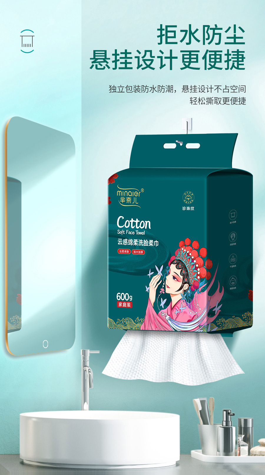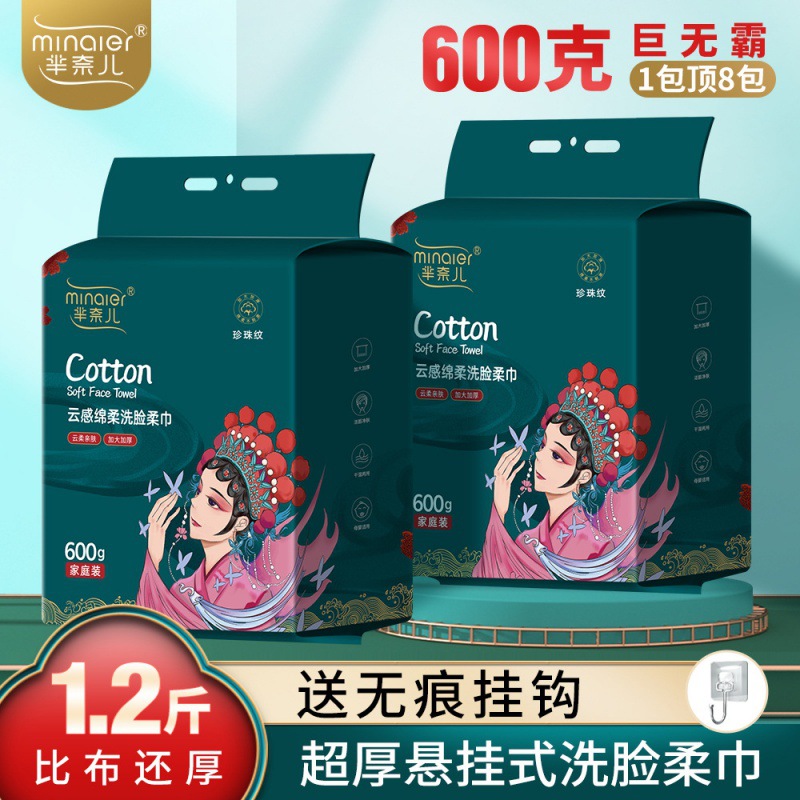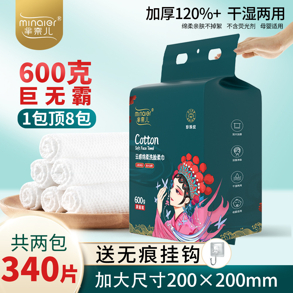 洗脸巾芈奈儿600g家庭装擦脸巾悬挂抽取式加大加厚一次性棉柔巾