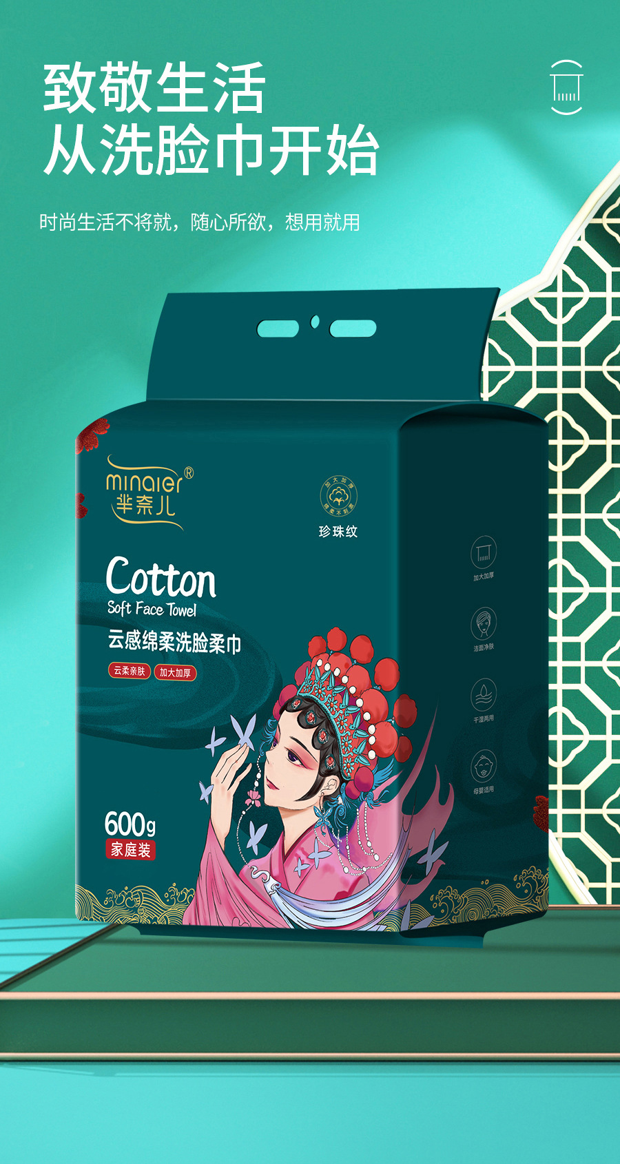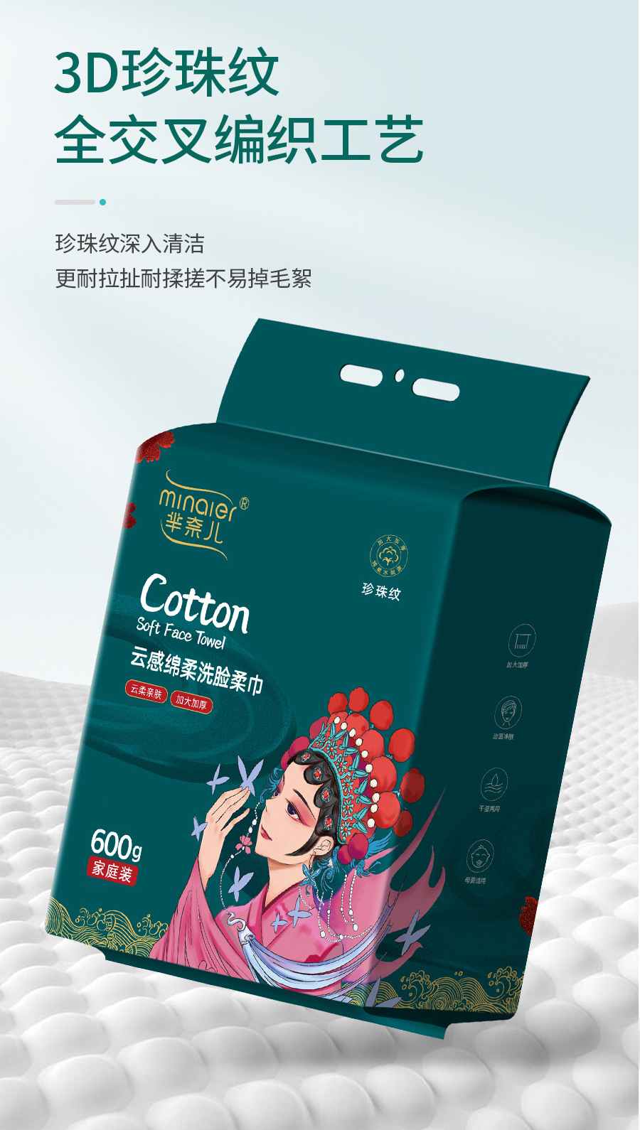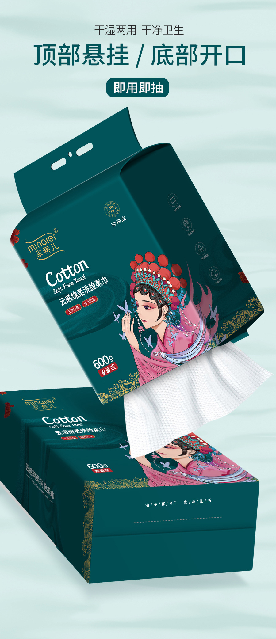 洗脸巾芈奈儿600g家庭装擦脸巾悬挂抽取式加大加厚一次性棉柔巾