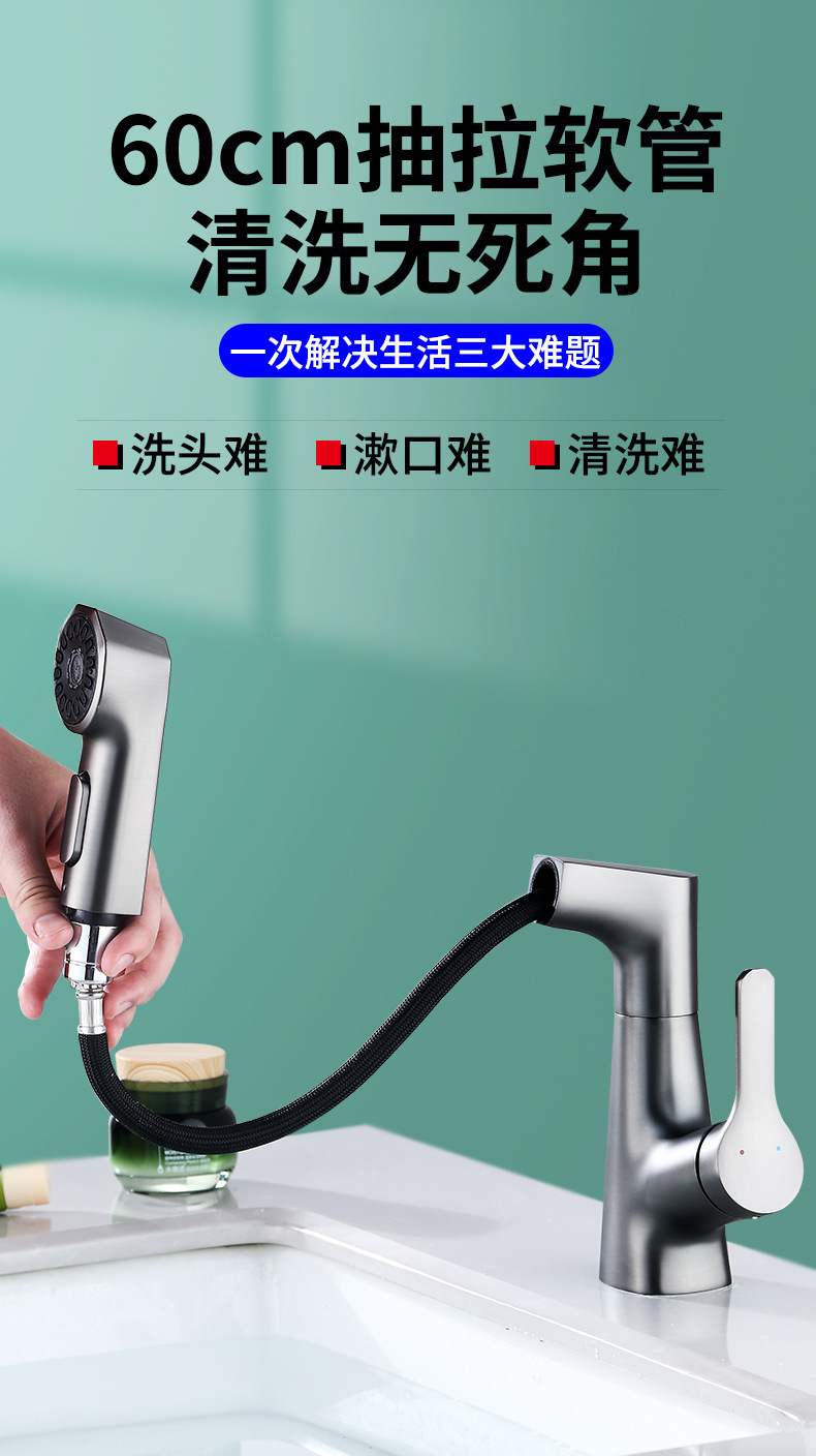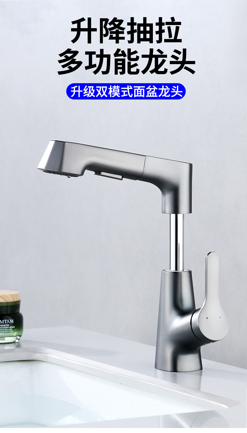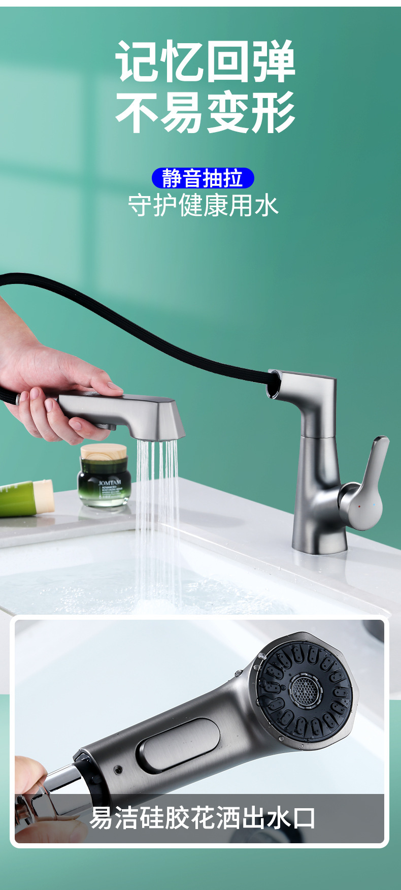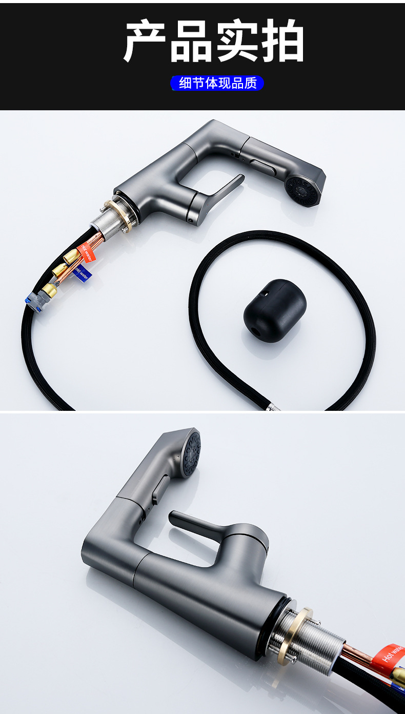 德国枪灰色升降抽拉式脸盆水龙头多功能面盆水龙头铜材质厂家批发