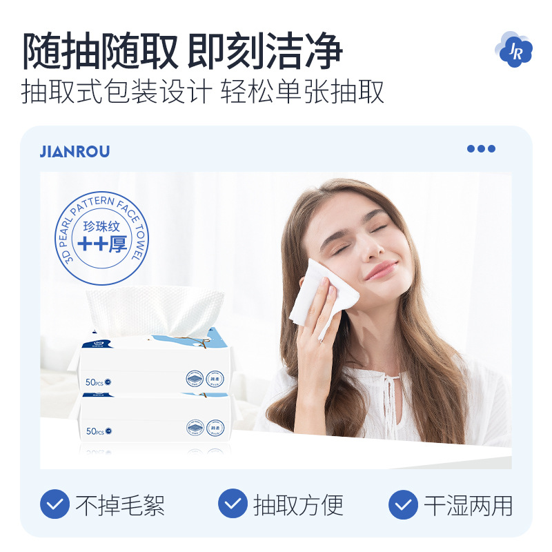 简柔加加厚一次性洗脸巾珍珠纹棉柔巾婴儿可用干湿两用擦洗绵柔巾