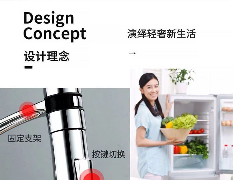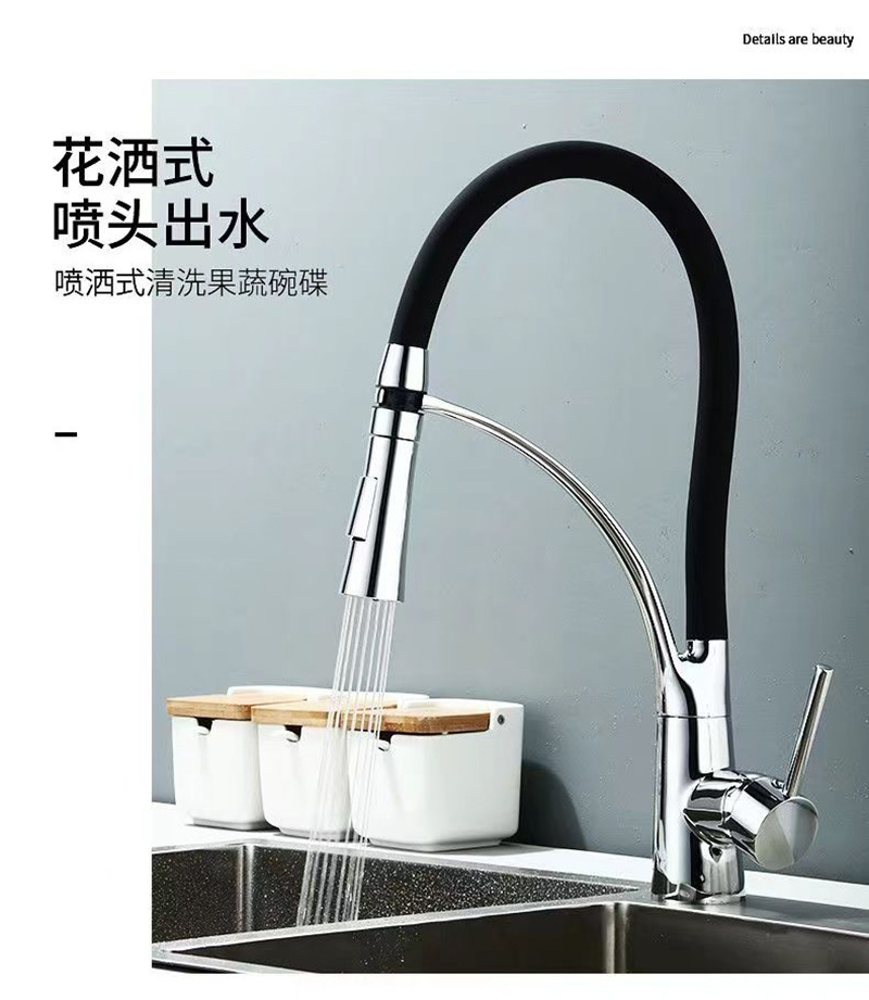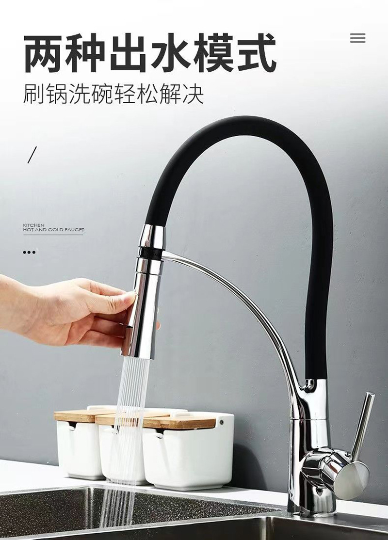 跨境全铜抽拉水龙头欧美冷热厨房万向旋转水龙头洗菜盆水槽水龙头
